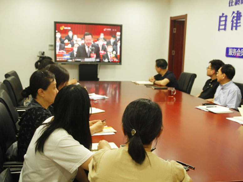 2022年5月28日上午,中国共产党山东省第十二次代表大会在济南隆重开幕,省委书记李干杰代表中国共产党山东省第十一届委员会向大会作报告。色情导航 在周克亮秘书长的带领下收看开幕式实况,认真聆听,努力学习省十二次党代会报告。全体人员参会,并认真做好学习笔记。
