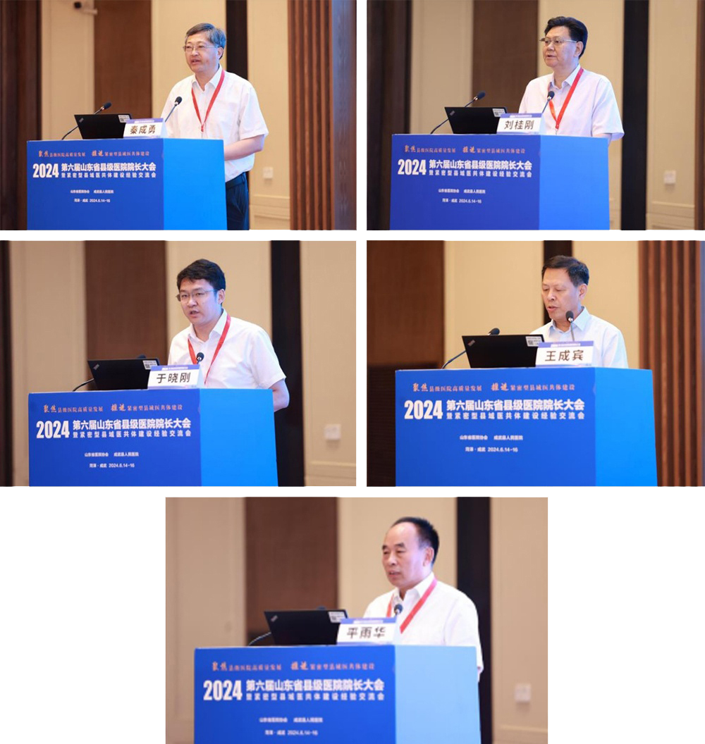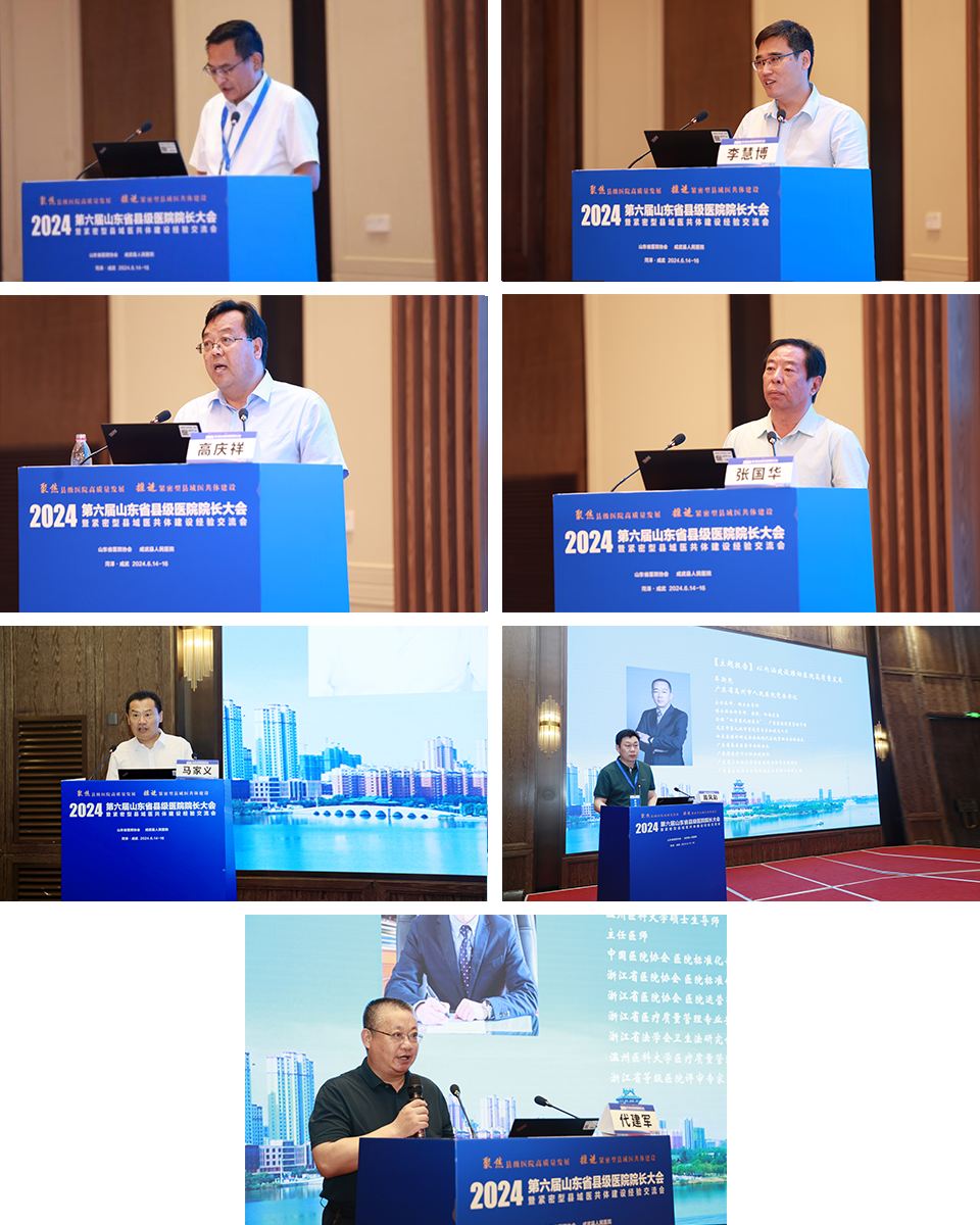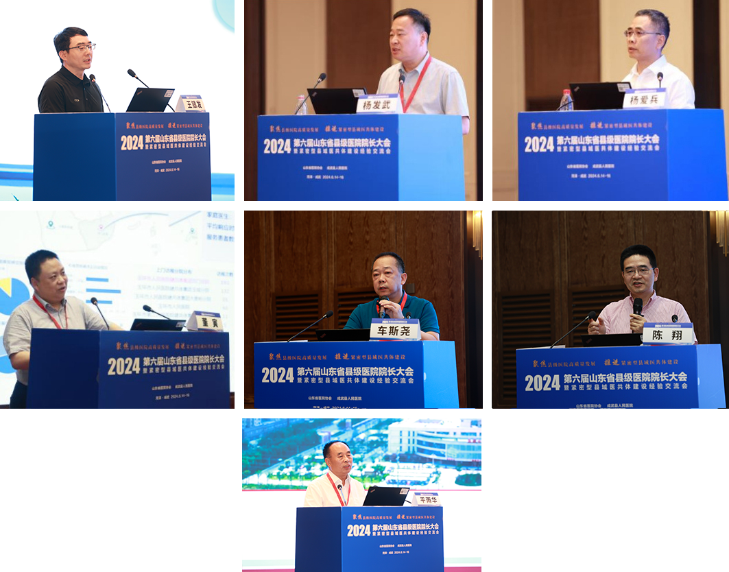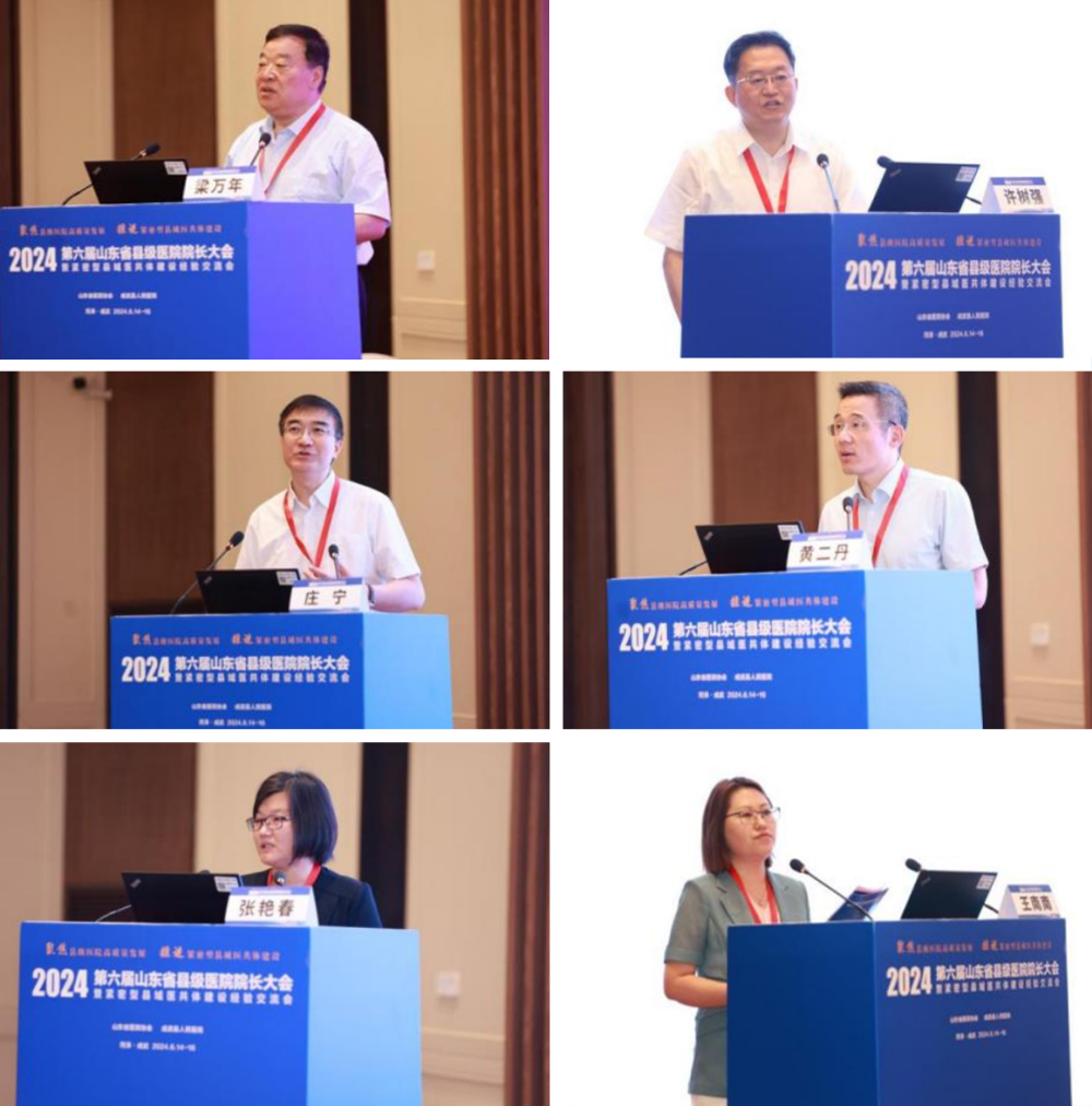 邹城市人民医院党委书记郝凤成、青岛市市立医院莱西市医疗集团副院长李慧博、菏泽市牡丹区人民医院院长高庆祥、滨州市第二人民医院党委书记张国华、寿光市人民医院党委书记马家义、德州市陵城区人民医院院长周风彩、济宁市金乡县人民医院院长代建军为学术交流环节进行主持和精彩点评。