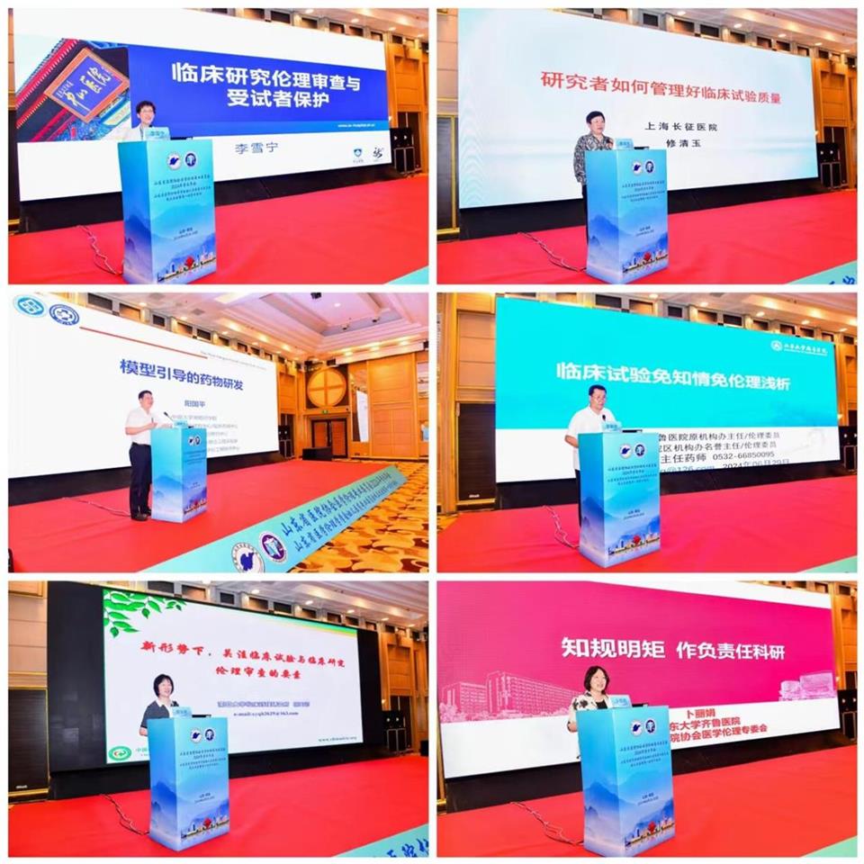 复旦大学附属中山医院临床试验机构常务副主任李雪宁、中南大学湘雅药学院副院长阳国平、南昌大学临床药理研究所所长熊玉卿、上海长征医院主任医师修清玉、山东大学齐鲁医院原机构办公室主任李朝武、山东大学齐鲁医院科研处副科长卜丽娟,分别围绕临床研究伦理审查与受试者保护、新形势下,关注临床试验与临床研究伦理审查的要素、研究者如何管理好临床试验质量、临床试验免知情免伦理浅析等作精彩报告。