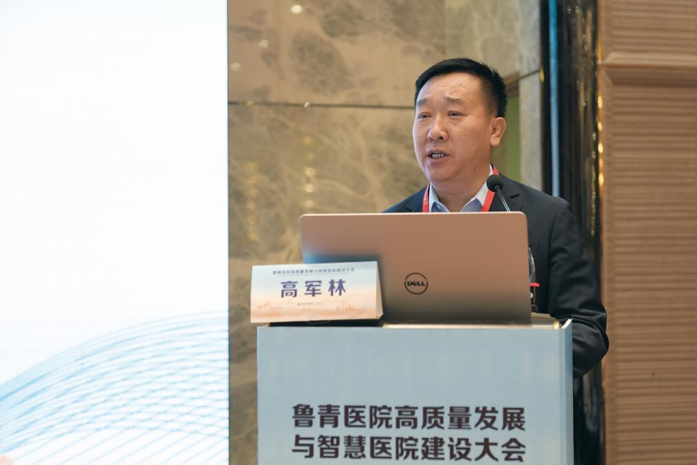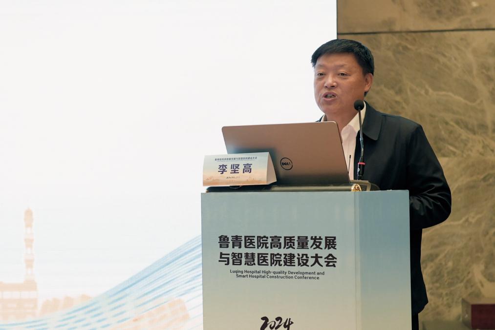 青海省卫生健康委员会党组成员、副主任李坚高发表讲话。习近平总书记十分关心青海生态保护、经济社会发展和民生工作,特别是对青海加快建设高原医学研究中心提出明确要求。自2010年起,山东先后已累计选派驻青一年以上医疗卫生人才512人,扶持和支援力度空前。李坚高副主任强调,鲁青两地的合作前景广阔,期望双方不仅在公立医院的高质量发展和智慧医院建设方面加强合作,还应在人才培养、技术交流、学科建设、医学科研以及高原医学等领域进行更深入的交流与合作。