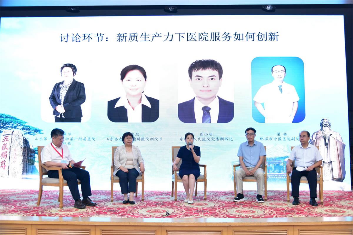 主题授课后,围绕“新质生产力下医疗服务如何创新”,组织安排了讨论环节。山东大学第二医院副院长靳斌担任主持嘉宾。山东第一医科大学第一附属医院副院长许翠萍;山东大学齐鲁医院德州医院副院长孙念政;东营市人民医院党委副书记周小明;肥城市中医医院副院长梁栋,分别介绍了医疗服务创新方面的好经验、好做法。