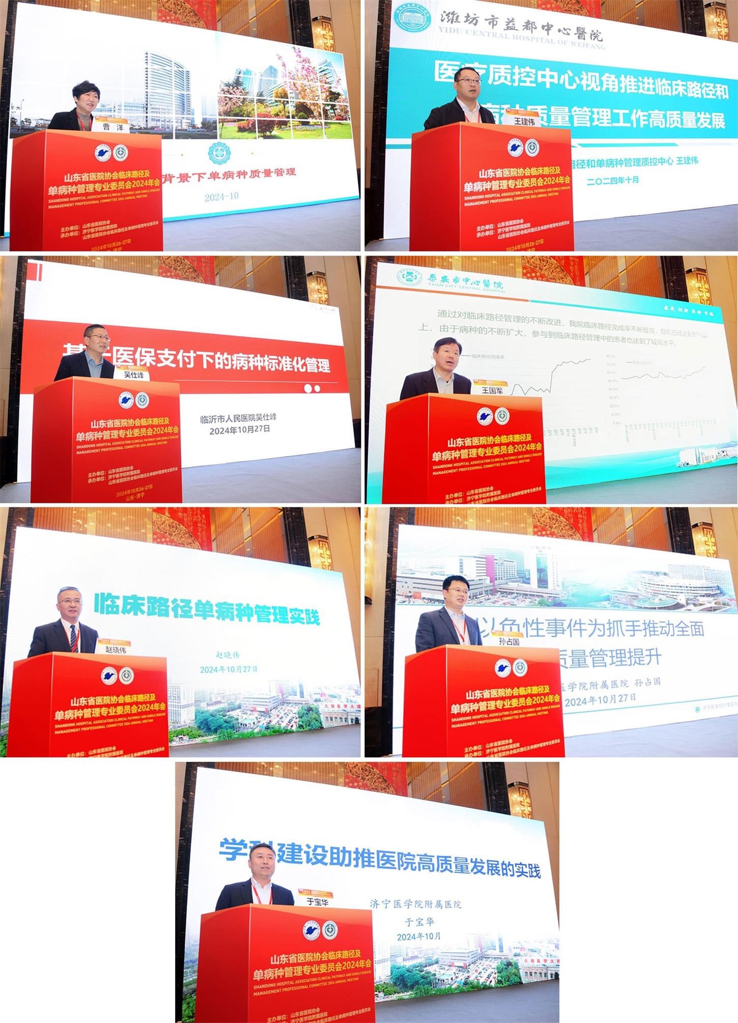 会议邀请江苏省人民医院质量管理处处长曹洋,临沂市人民医院副院长吴仕峰,泰安市中心医院副院长王国军,潍坊市益都中心医院质量控制部主任王建伟,济医附院副院长赵晓伟,济医附院医院质量与安全管理部主任孙占国,济医附院医务部主任于宝华,围绕国考背景下的单病种质控、基于医保支付政策背景下病种标准化管理、临床路径精细化管理助力医院高质量发展等方面进行了深入探讨与交流。专委会副主任委员李永春、蔡治国、陈国强、姜鹏飞、闫根全、张春燕及谢颖光分别担任大会主持。