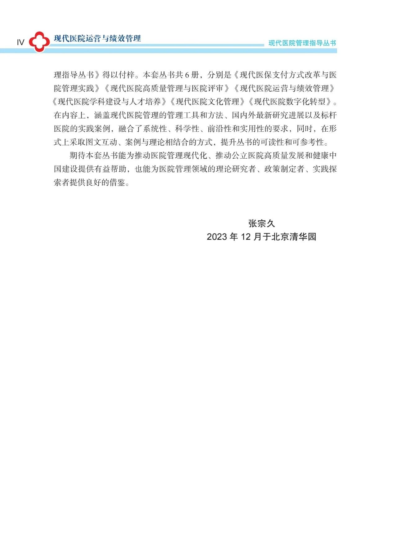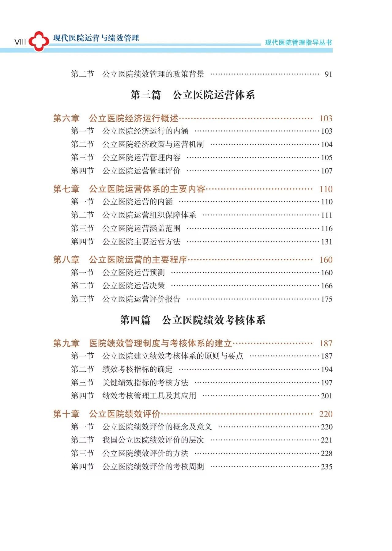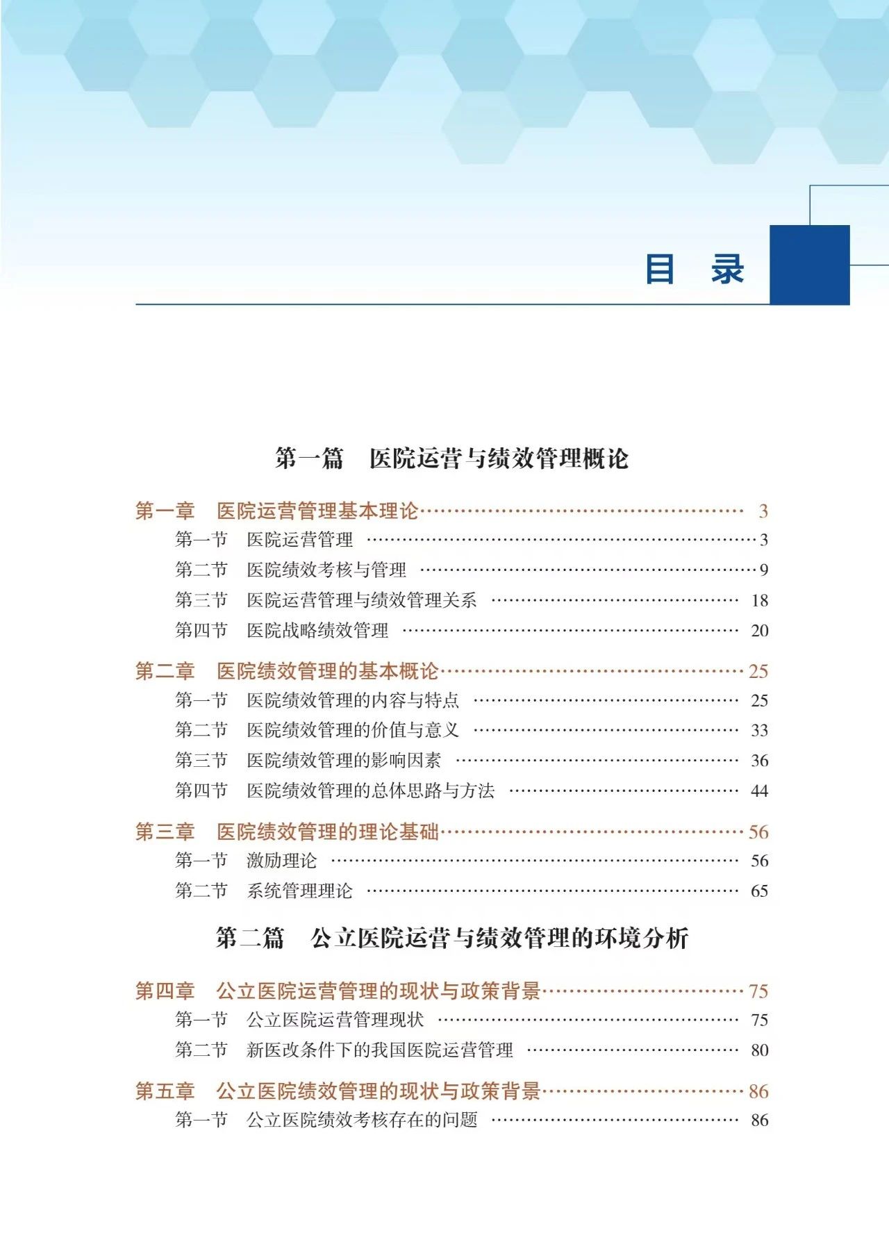 医院运营与绩效管理是现代医院管理的重要抓手,涉及医院管理的各个方面,是一个复杂且关键的重要过程,是提升医院运行效率、医疗质量和服务水平的重中之重,是促进现代医院高质量发展的核心。2019年国务院办公厅印发的《关于加强三级公立医院绩效考核工作的意见》明确提出要引导公立医院功能定位,促进医疗服务质量、效率的整体提升。随着医疗改革的深入和医疗技术的不断发展,医院运营与绩效管理将面临新的挑战和机遇。未来医院运营与绩效管理将更加注重数据驱动和智能化管理,通过大数据、人工智能等技术手段来提升医院的运营效率和服务质量。同时,医院也将更加注重社会责任和公益性,通过绩效管理来推动医院的高质量发展。