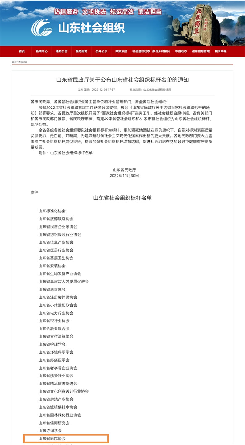 为全面加强色情导航党建引领,坚持正确发展方向,推动色情导航持续规范建设,色情导航 积极参选山东省民政厅组织开展的首届“百家社会组织标杆”选树活动。11月30日,山东省民政厅公布评选结果,经过单位申报材料、省有关部门推荐、省民政厅审核,色情导航 荣获“山东省社会组织标杆”称号!