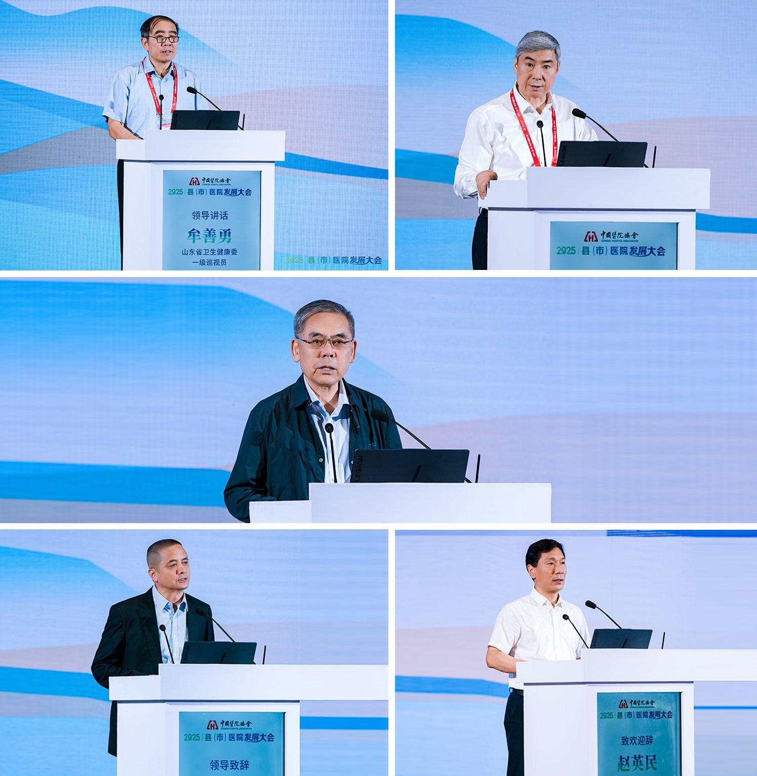 山东省卫生健康委一级巡视员牟善勇发表讲话。他在讲话中强调,山东作为经济文化、人口及医疗资源大省,省委省政府始终坚持健康优先发展战略,卫生健康事业取得显著成效。他指出,县级医院是构建分级诊疗制度的关键环节。近年来,山东省通过大力实施县级医院能力提升工程及系列标准化建设举措,全省78家县级医院已全部达到国家医疗服务能力推荐标准,2024年诊疗量实现同比增长4.7%。他希望与会代表充分利用此次机会,深入交流、凝聚共识,共同推动山东省县级医院综合能力建设迈上新台阶。