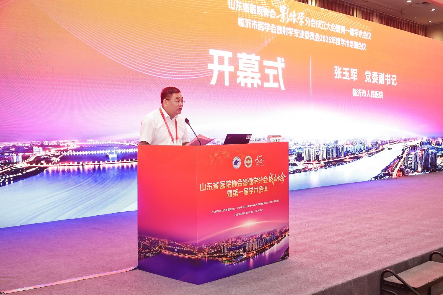 张玉军副书记代表临沂市人民医院致欢迎词,他介绍了医院影像学科作为省临床重点专科及市影像质控、诊断中心,医院设备先进、团队专业,能够为临床精准治疗提供保障。此次会议在临沂召开,将进一步推动全省影像领域交流合作,提升学科水平,为患者提供更优服务。
