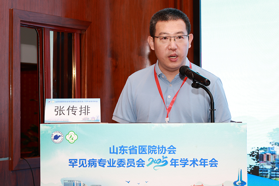 张传排副处长在致辞中首先向关心支持山东第一医科大学第一附属医院和罕见病事业发展的各位领导、专家、同仁表示衷心的感谢,向大家的到来表示欢迎。他表示,近年来医院始终坚持以人民健康为中心,积极搭建多学科协作平台,整合优质医疗资源,积极开展罕见病的临床和基础研究,推进罕见病药物的引进和临床药物试验,努力提升全省罕见病的诊疗能力和水平, 未来,医院将加大罕见病科研力度, 聚焦前沿技术攻关与成果转化,深化国际合作,打造区域罕见病诊治高地,为更多患者点亮希望之光,推动全省罕见病防治事业再上新台阶。
