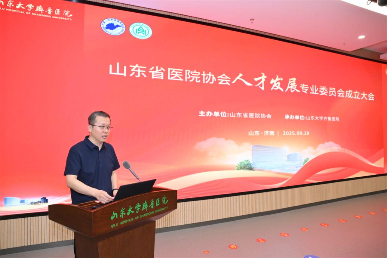 山东大学齐鲁医院副院长徐峰为成立大会总结发言,他表示人才是高质量发展的引擎,专委会的成立为全省医疗机构协同破解人才发展难题提供了重要平台。齐鲁医院将全力支持专委会建设,与全省医疗机构携手共创卓越医学人才队伍建设创新模式,为卫生健康事业高质量发展注入强劲动能。