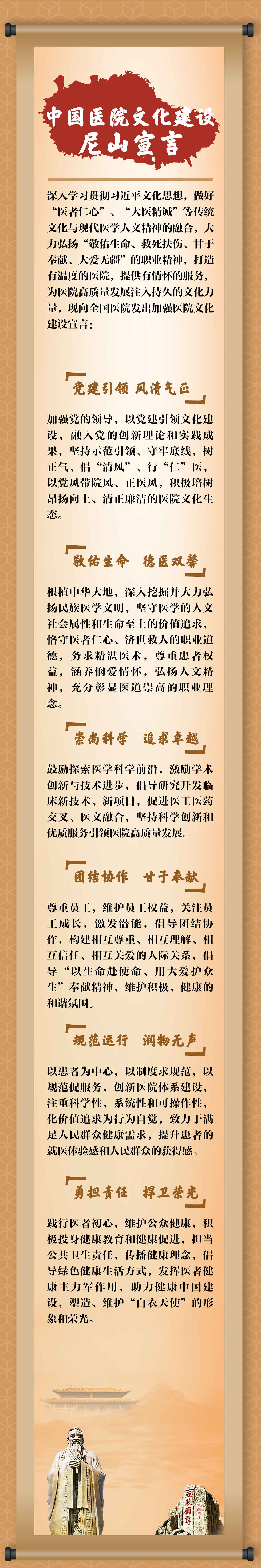 面向未来,全国医疗卫生机构将以《中国医院文化建设尼山宣言》为新起点,持续深化医院文化建设的理论研究和实践探索。为守护人民健康、助力民族复兴伟业提供坚强文化支撑。