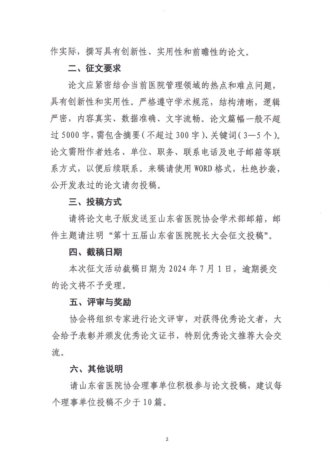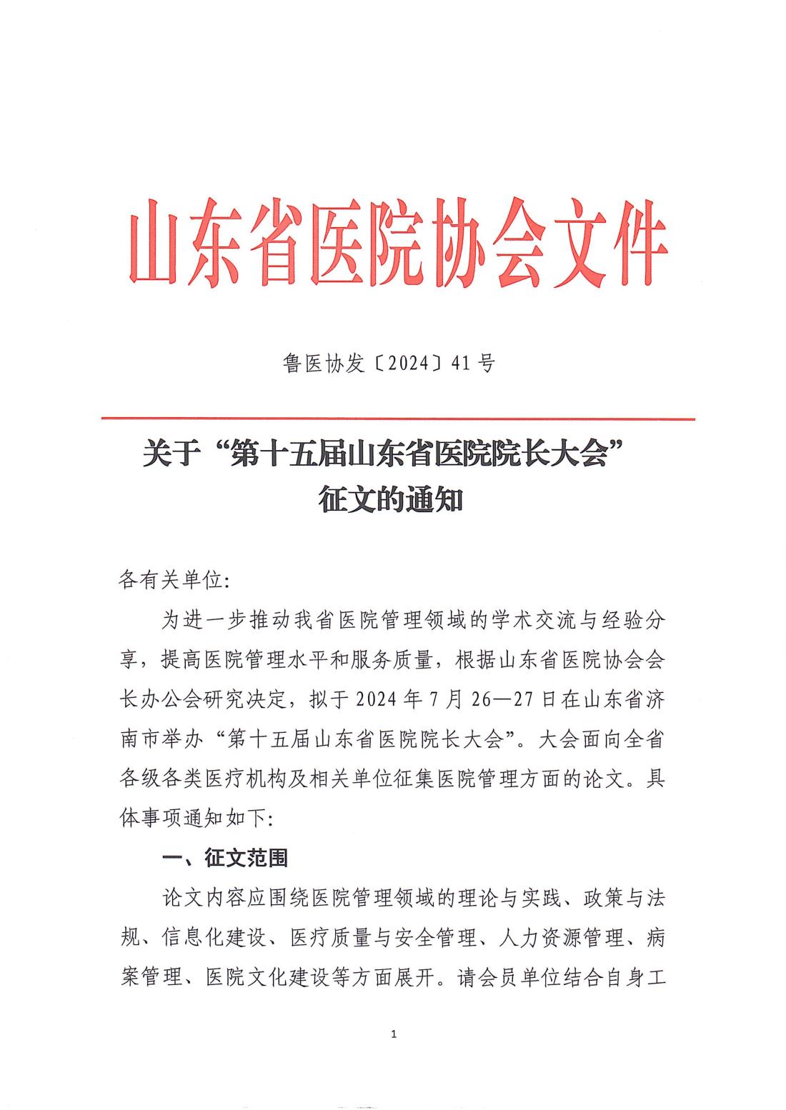 2024年第六届山东省县级医院院长大会暨紧密型县域医共体建设经验交流会的通知