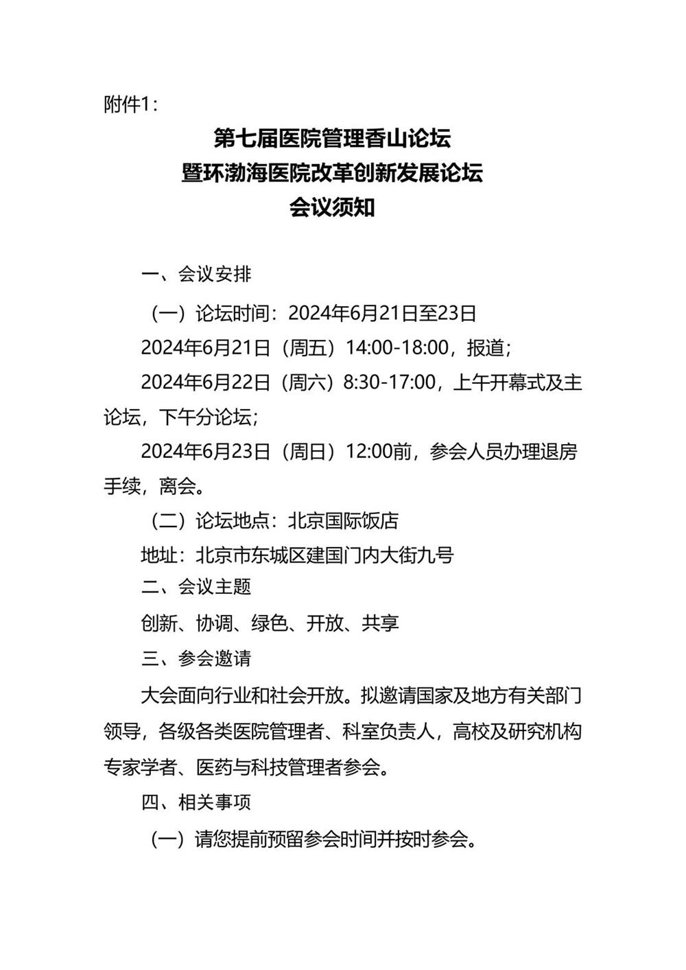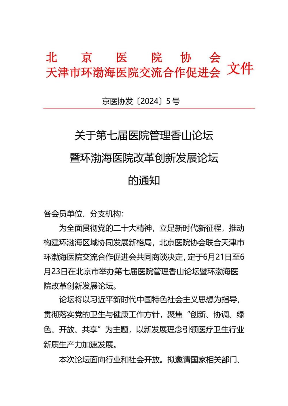 环渤海-关于召开第七届医院管理香山论坛暨环渤海医院改革创新发展论坛的通知