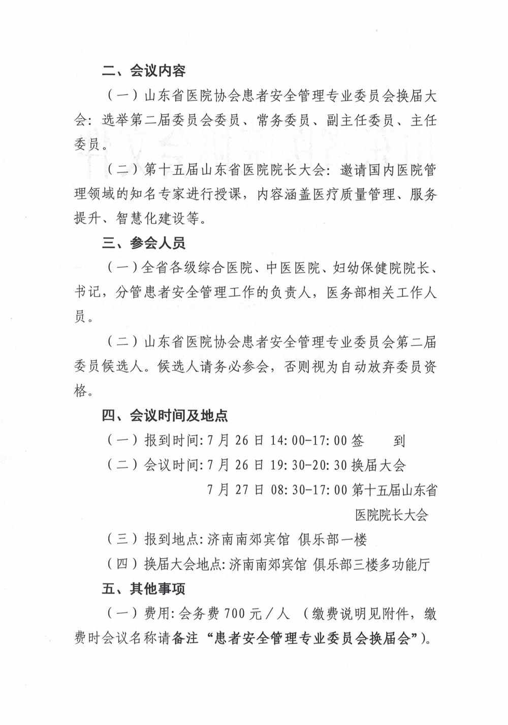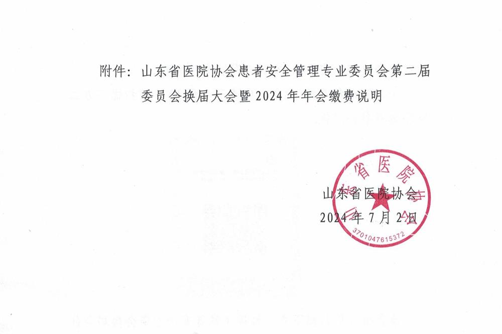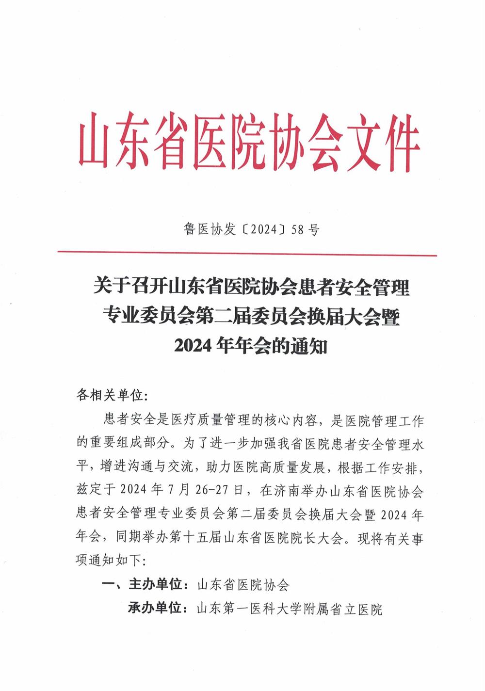 鲁医协发〔2024〕58号关于召开色情导航 患者安全管理专业委员会第二届委员会换届大会暨2024年年会的通知