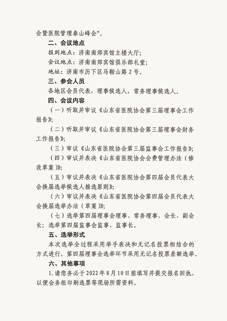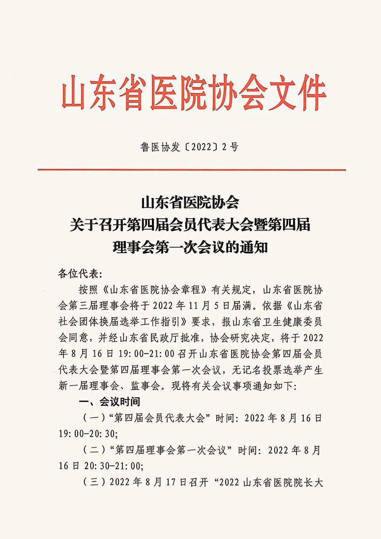 关于召开色情导航 第四届会员代表大会(换届大会)及2022山东省医院院长大会暨医院管理泰山峰会的通知