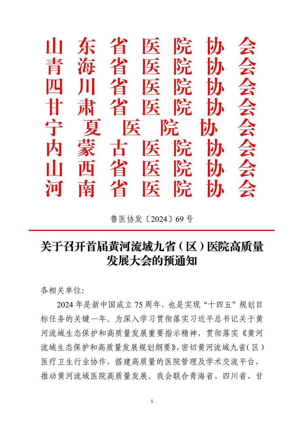 关于召开首届黄河流域九省(区)医院高质量发展大会的预通知