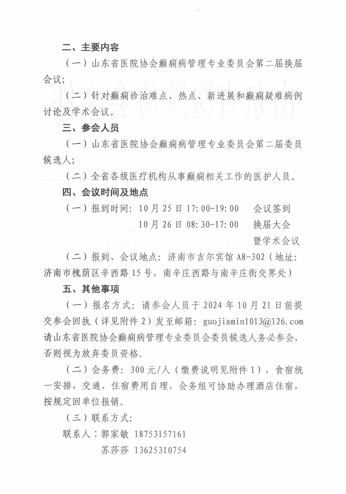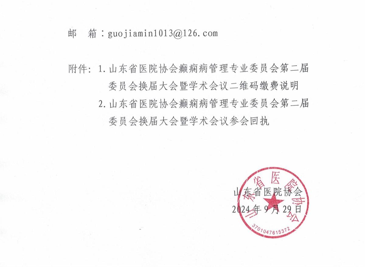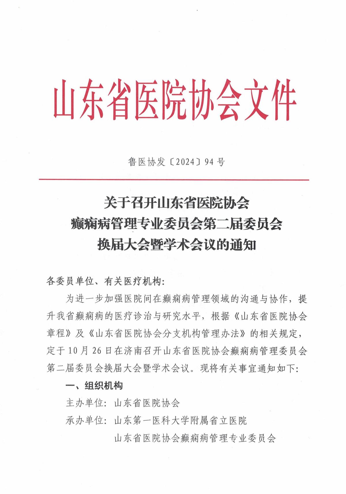 鲁医协发〔2024〕94号关于召开色情导航 癫痫病管理专业委员会第二届委员会换届大会暨学术会议的通知