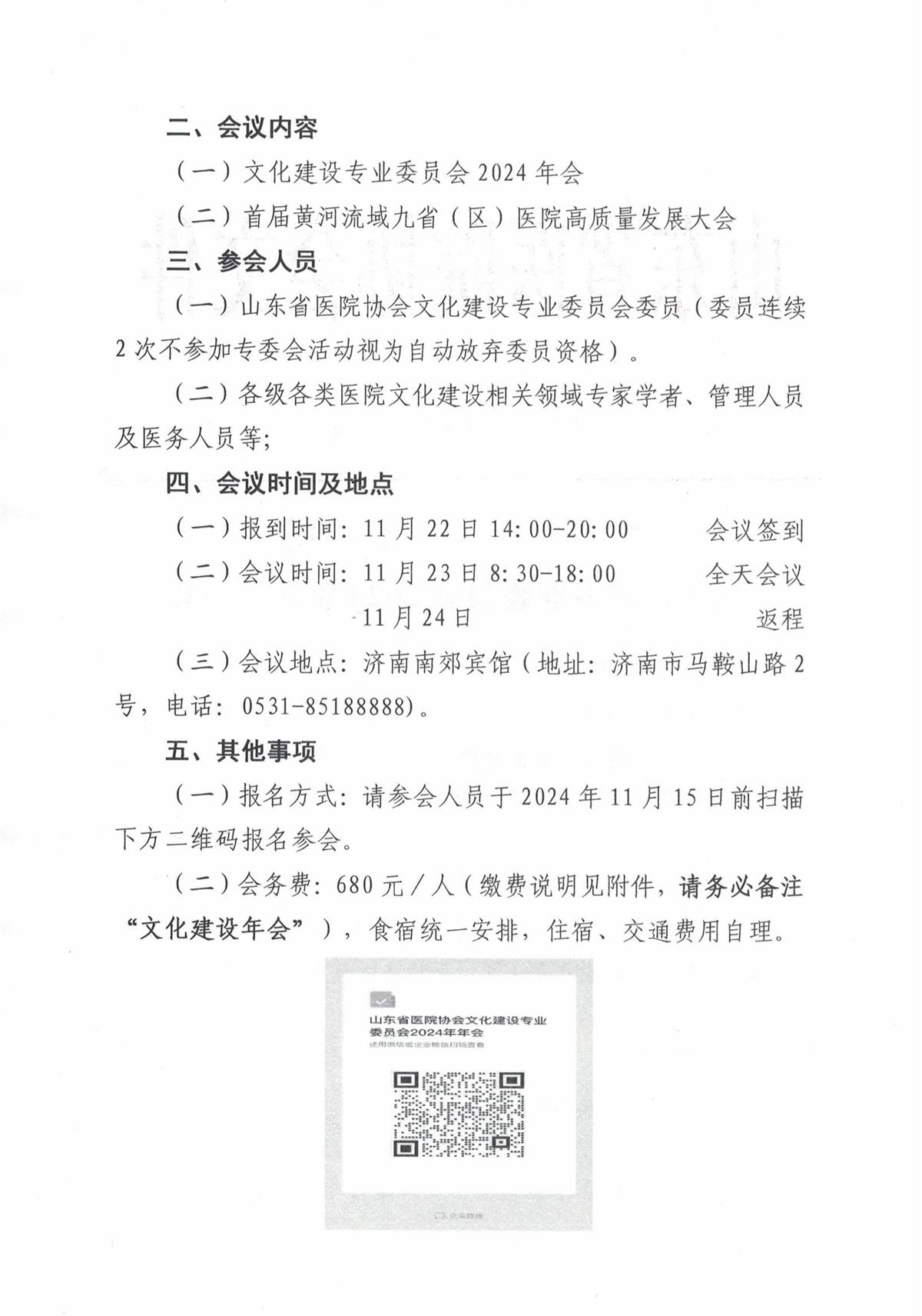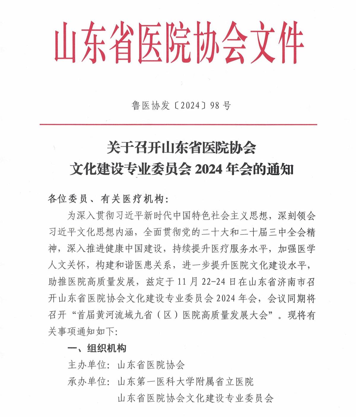 鲁医协发〔2024〕98号关于召开色情导航 文化建设专业委员会2024年会的通知