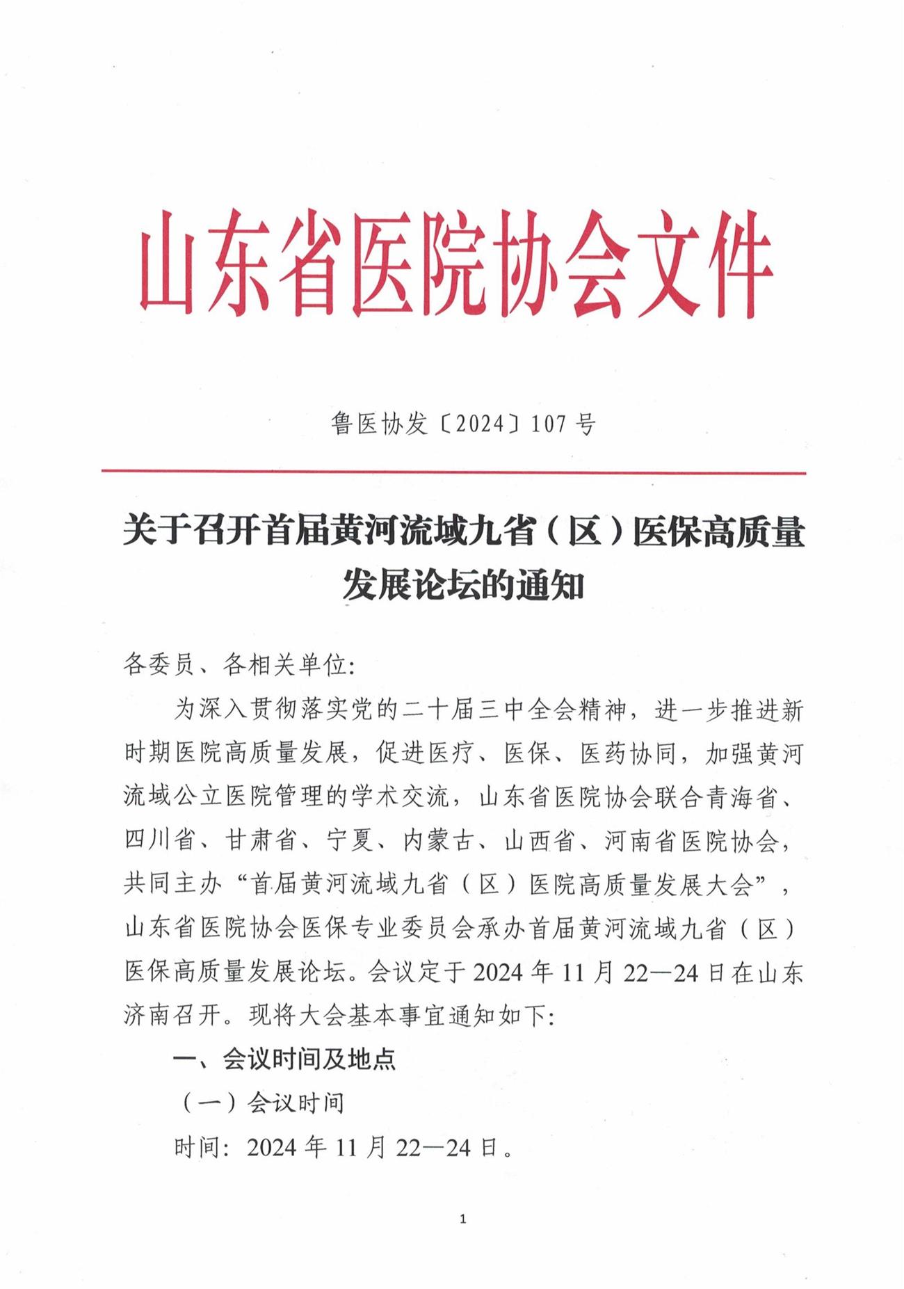 鲁医协发〔2024〕107号关于召开首届黄河流域九省(区)医保高质量发展论坛的通知