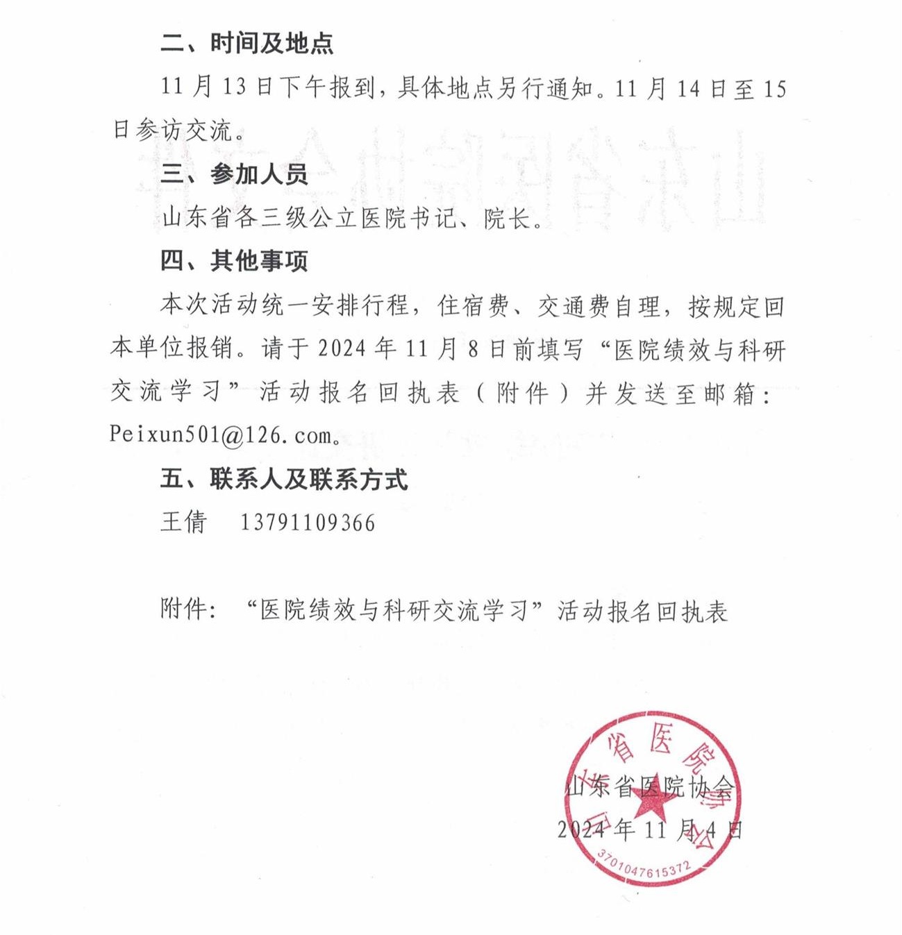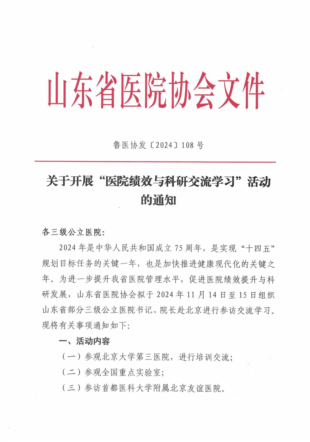 鲁医协发〔2024〕108号关于开展“医院绩效与科研交流学习”活动的通知
