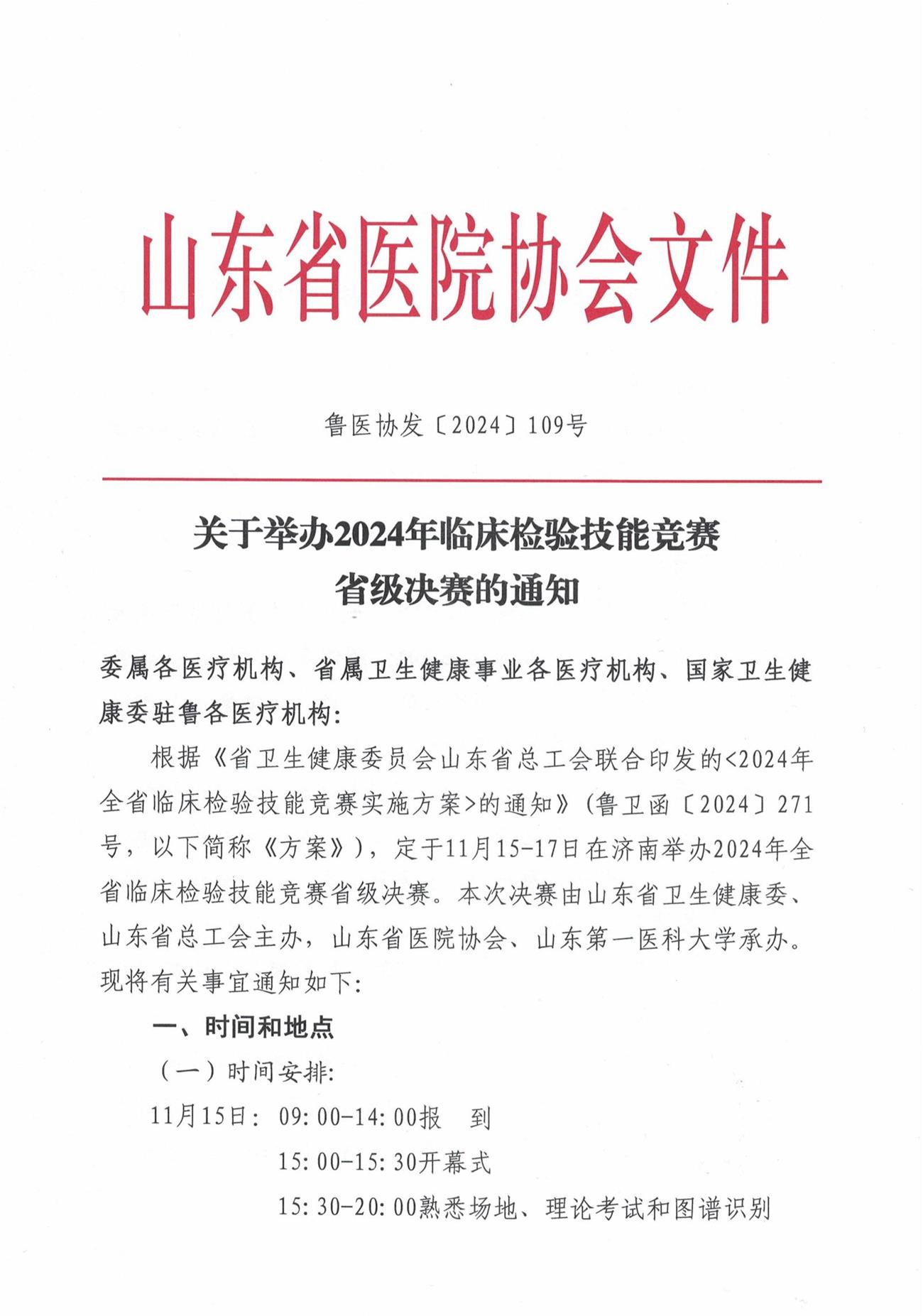 鲁医协发〔2024〕109号关于举办2024年临床检验技能竞赛省级决赛的通知