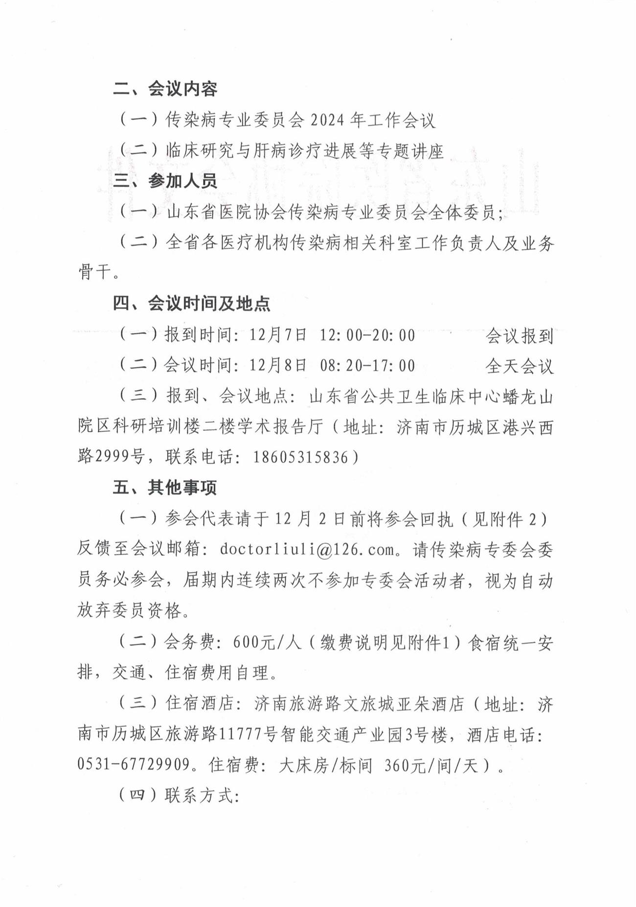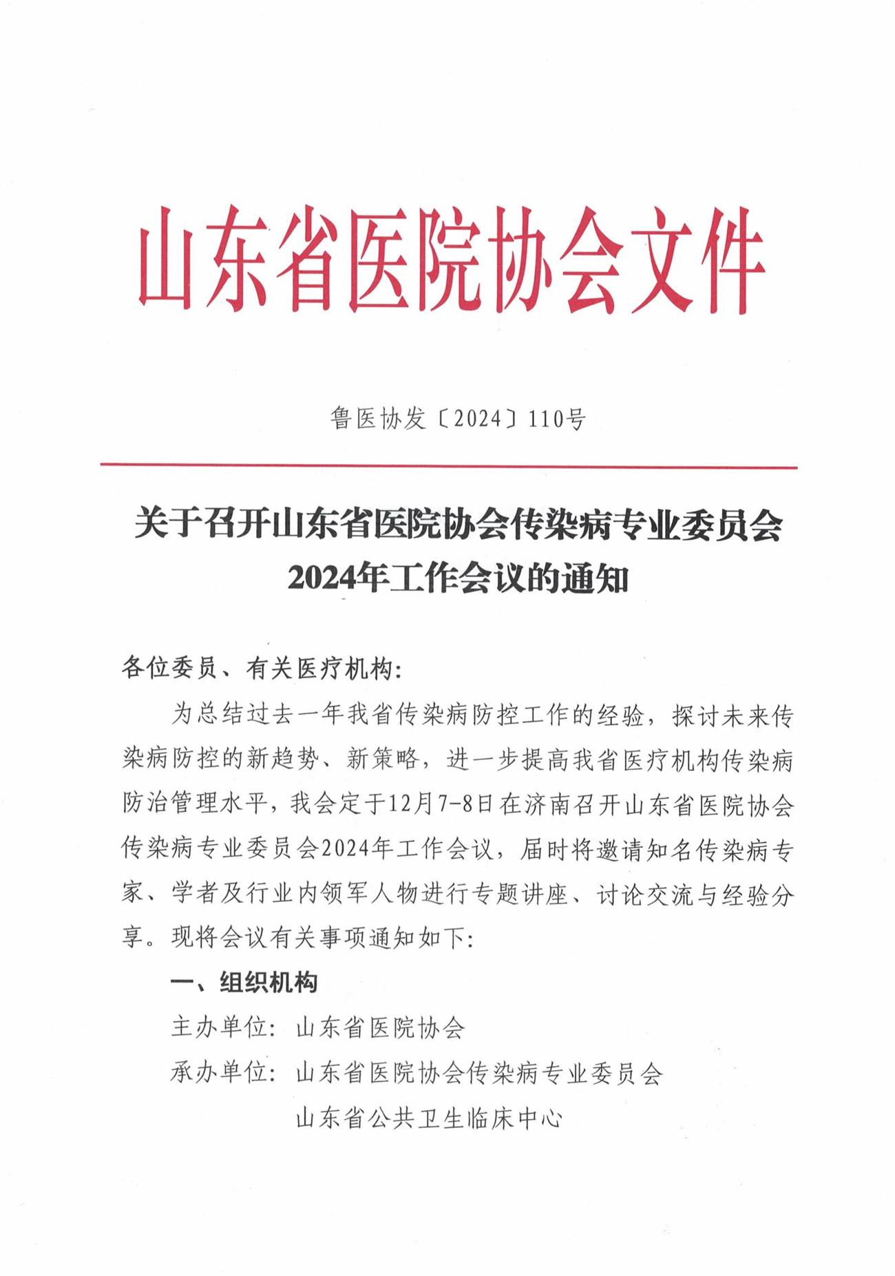 鲁医协发〔2024〕110号关于召开色情导航 传染病专业委员会2024年工作会议的通知