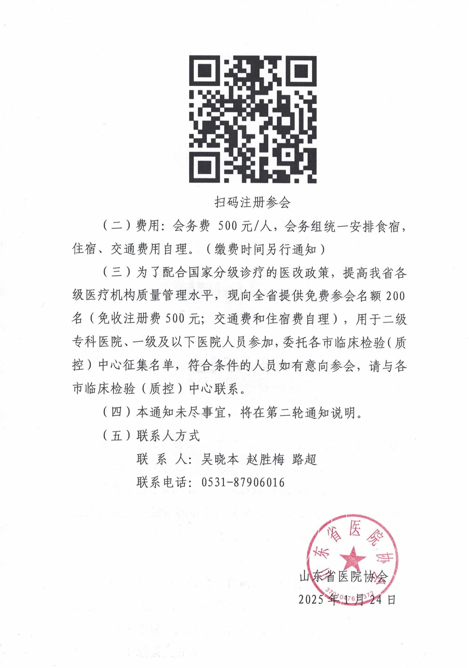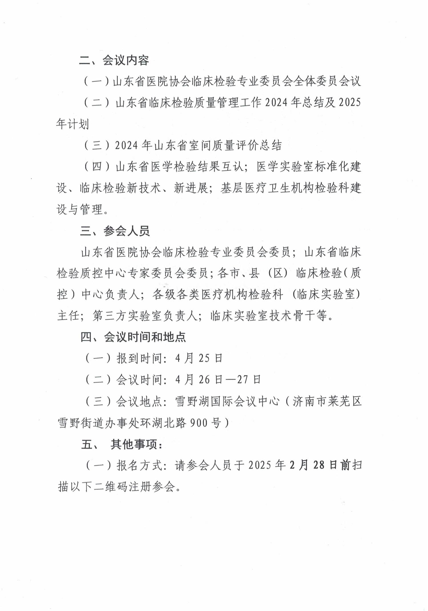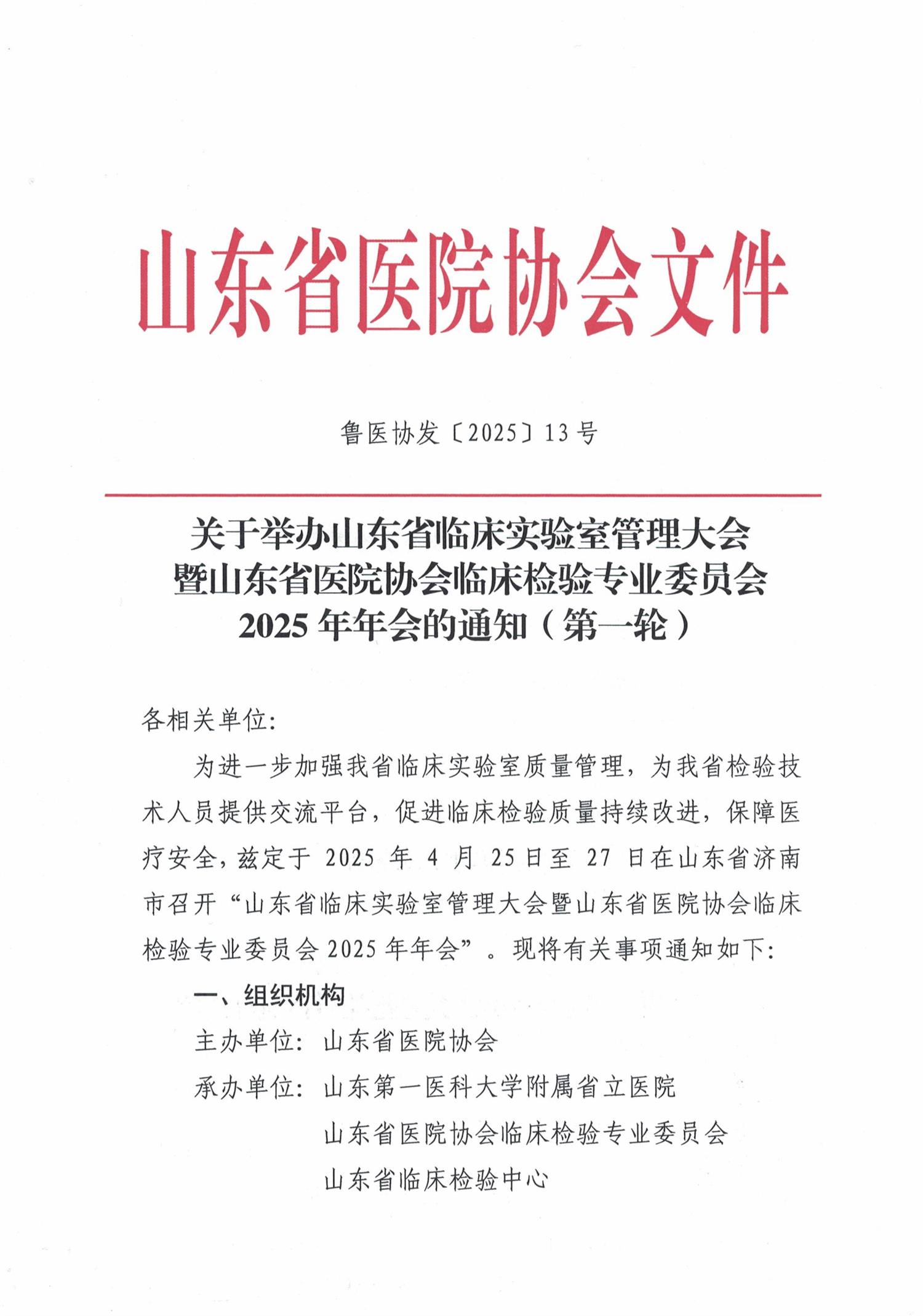 关于举办山东省临床实验室管理大会暨色情导航 临床检验专业委员会2025年年会的通知(第一轮)