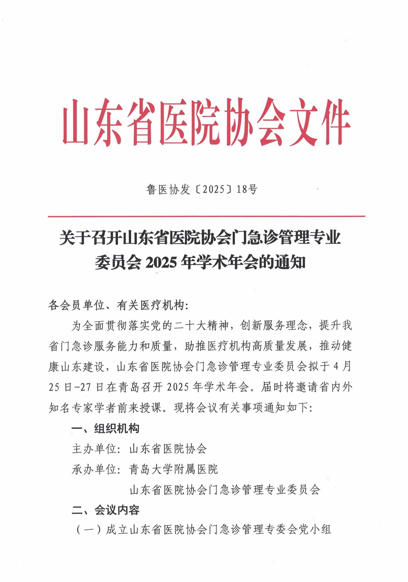关于召开色情导航 门急诊管理专业委员会2025年学术年会的通知