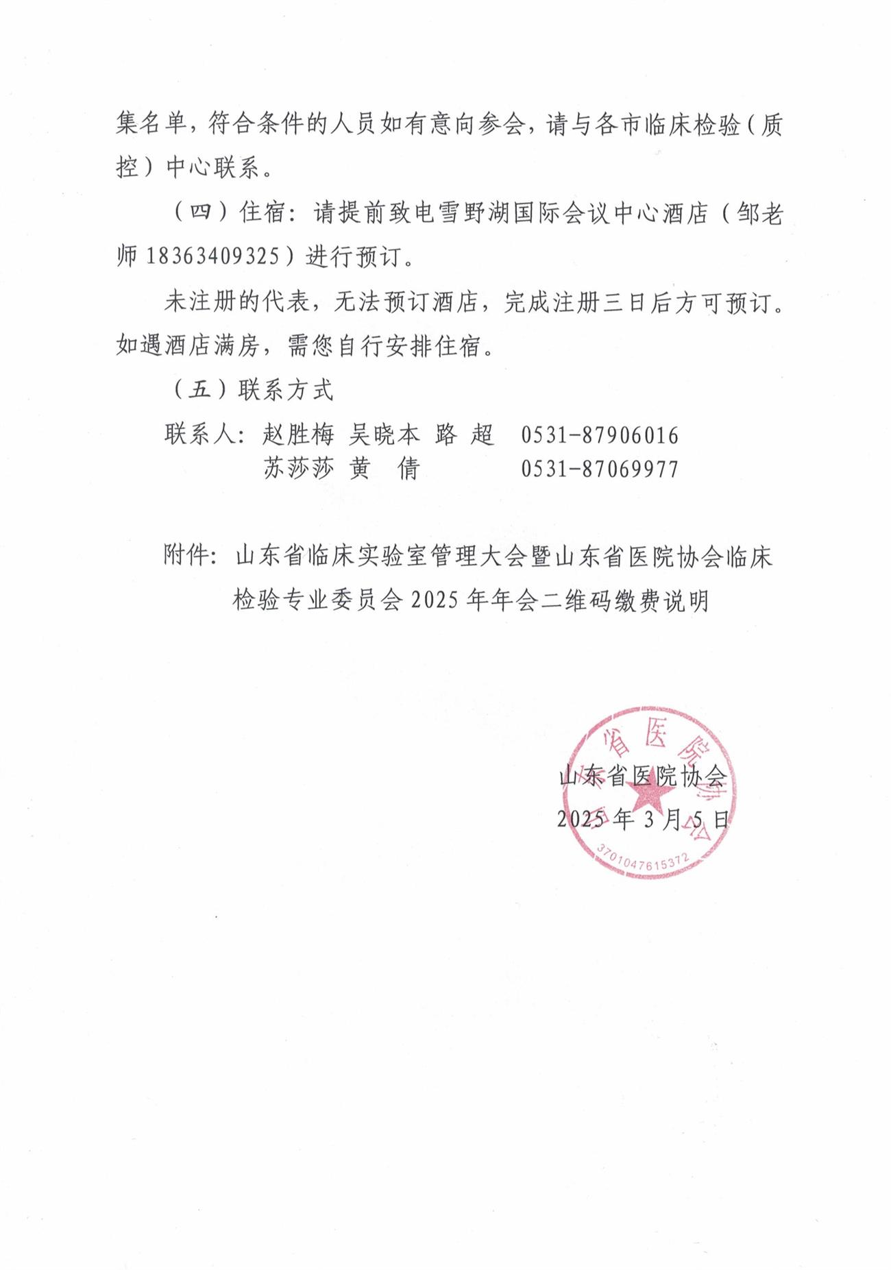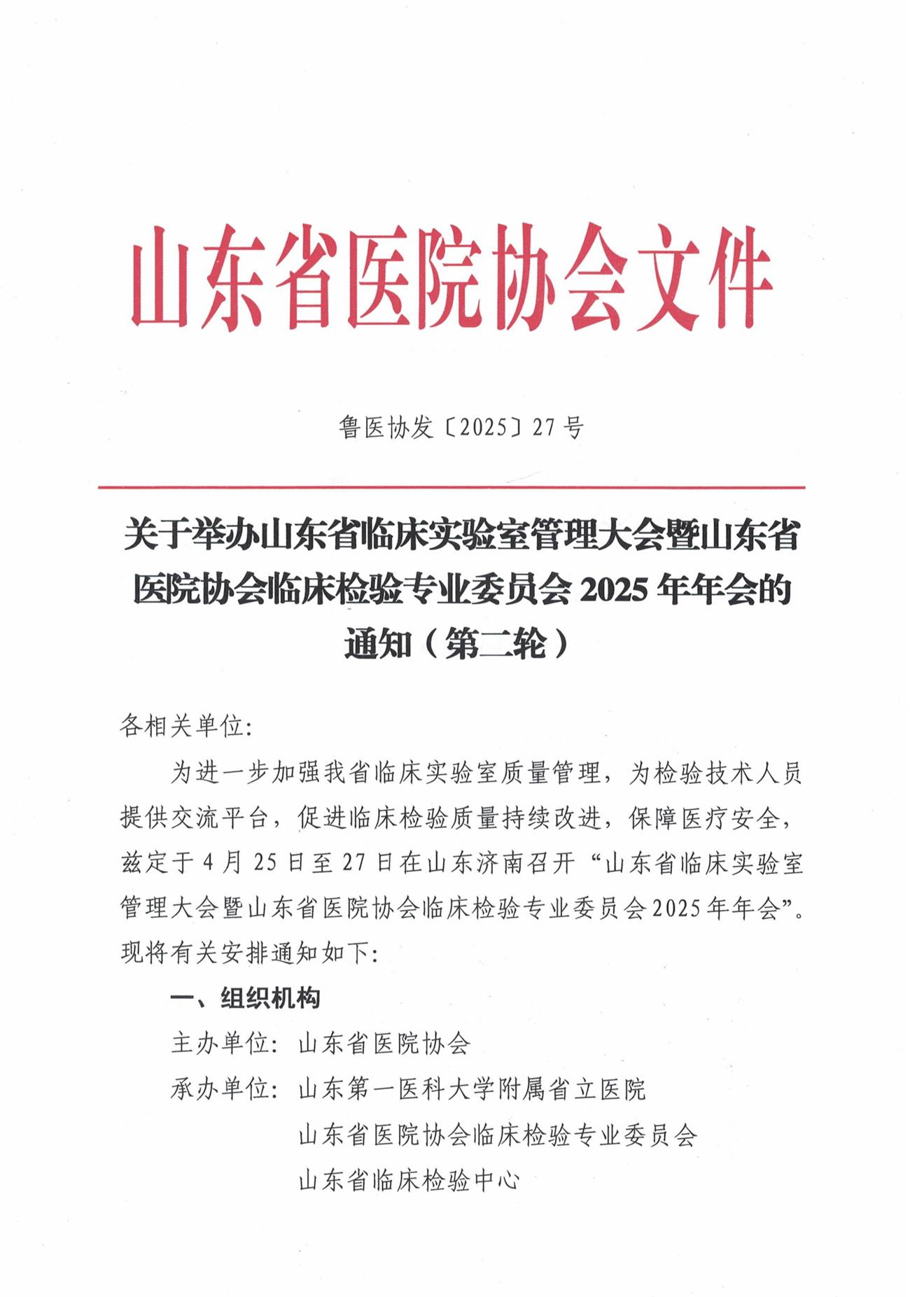 关于举办山东省临床实验室管理大会暨色情导航 临床检验专业委员会2025年年会的通知(第二轮)