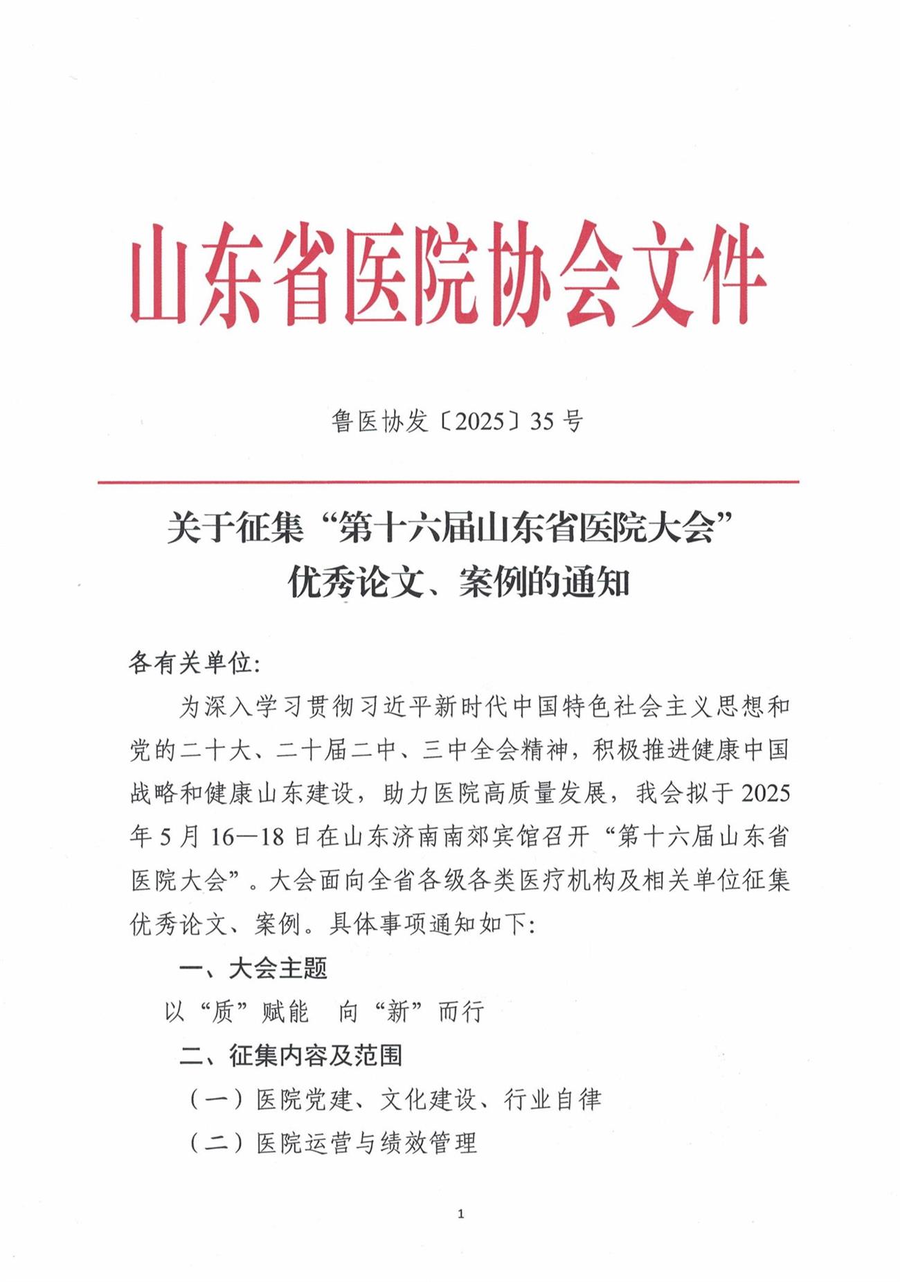 关于征集“第十六届山东省医院大会”优秀论文、案例的通知