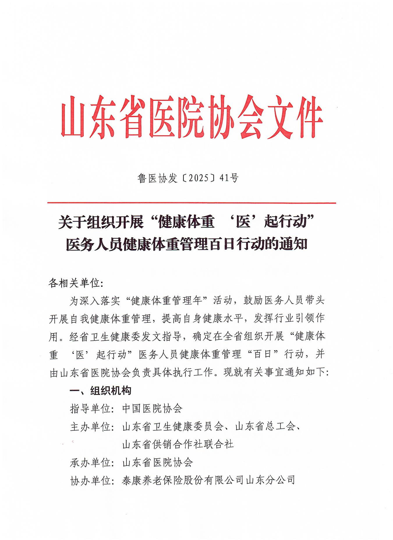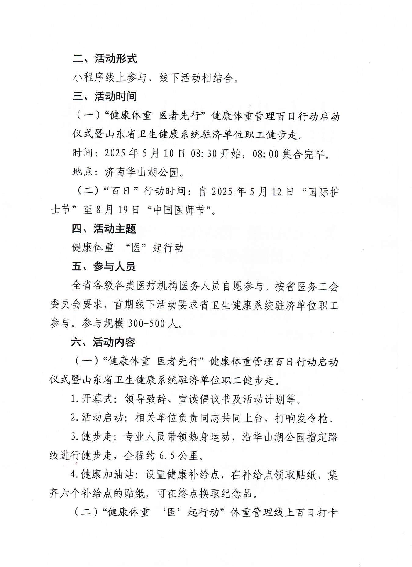 关于组织开展“健康体重 ‘医’起行动”医务人员健康体重管理百日行动的通知