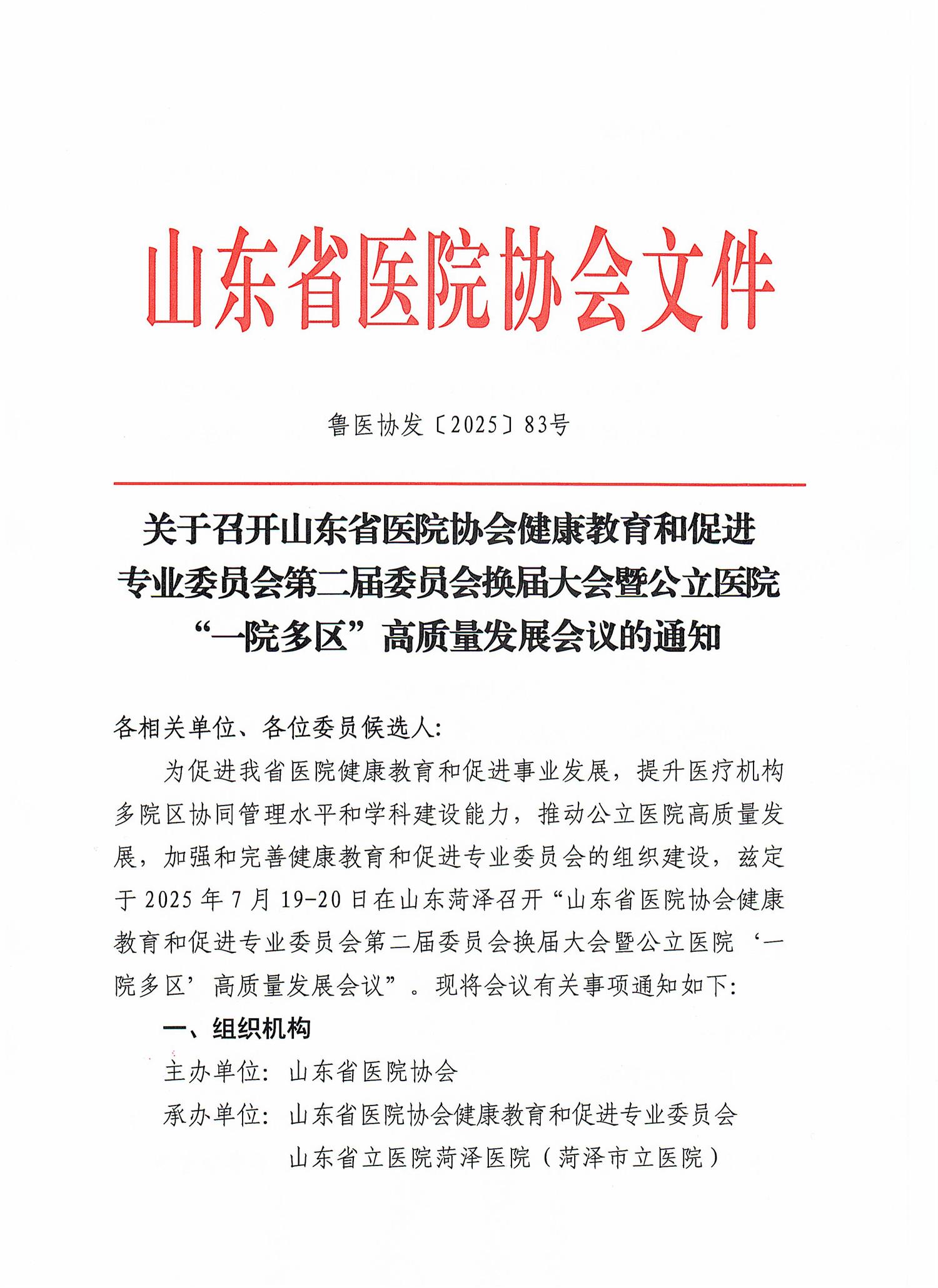 关于召开色情导航 健康教育和促进专业委员会第二届委员会换届大会暨公立医院“一院多区”高质量发展会议的通知