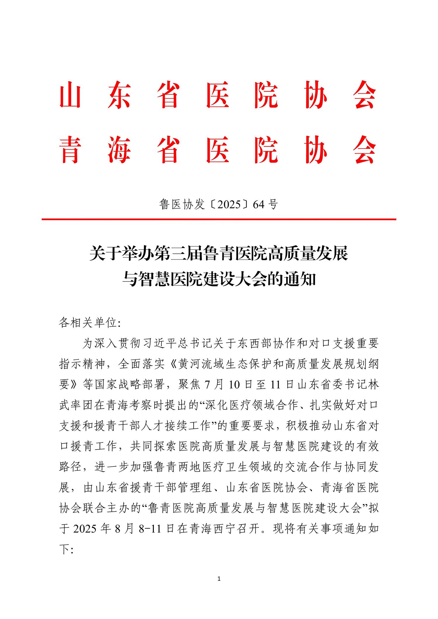 关于举办第三届鲁青医院高质量发展与智慧医院建设大会的通知