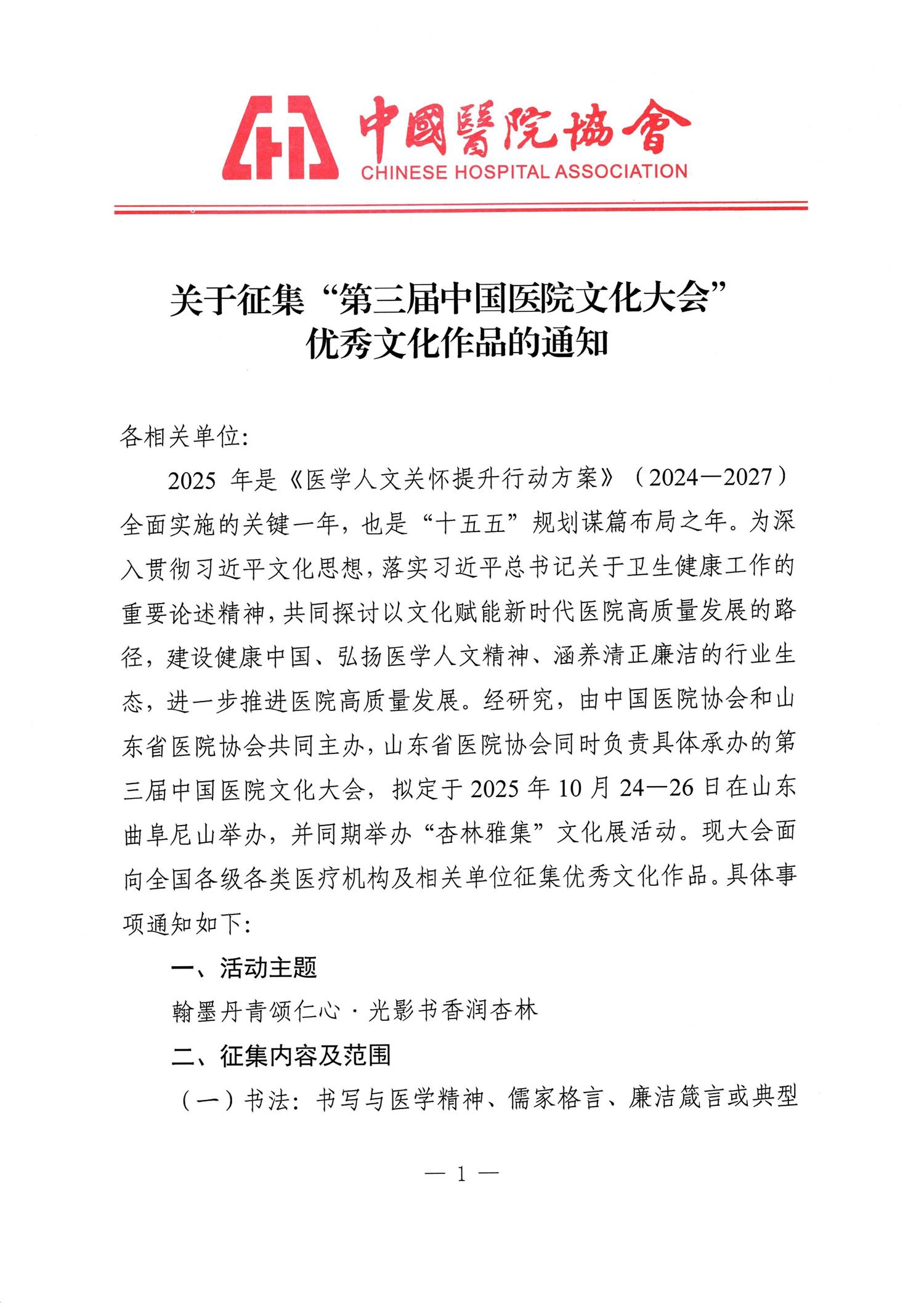 关于征集“第三届中国医院文化大会”优秀文化作品的通知