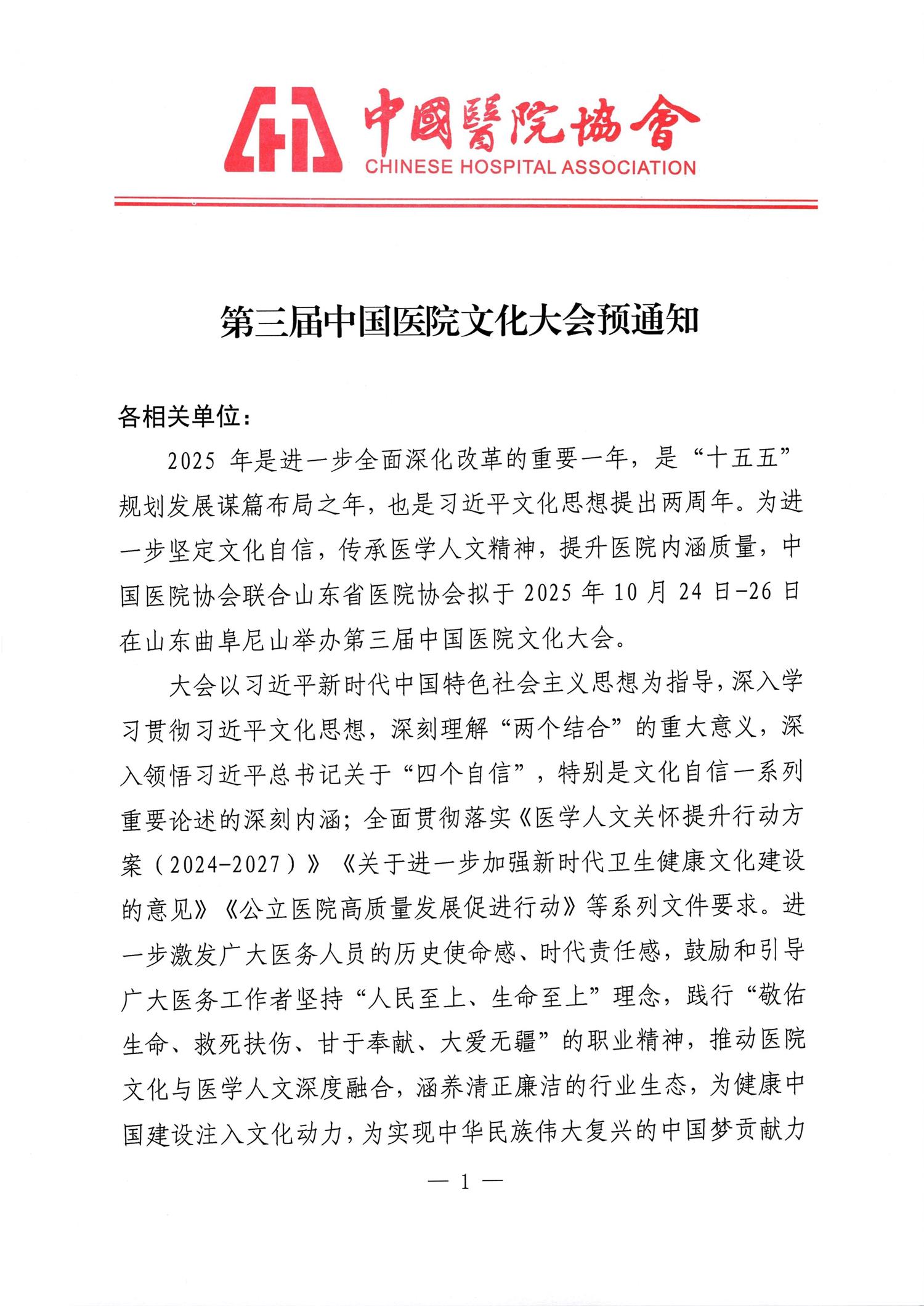 关于征集“第三届中国医院文化大会”优秀文化作品的通知