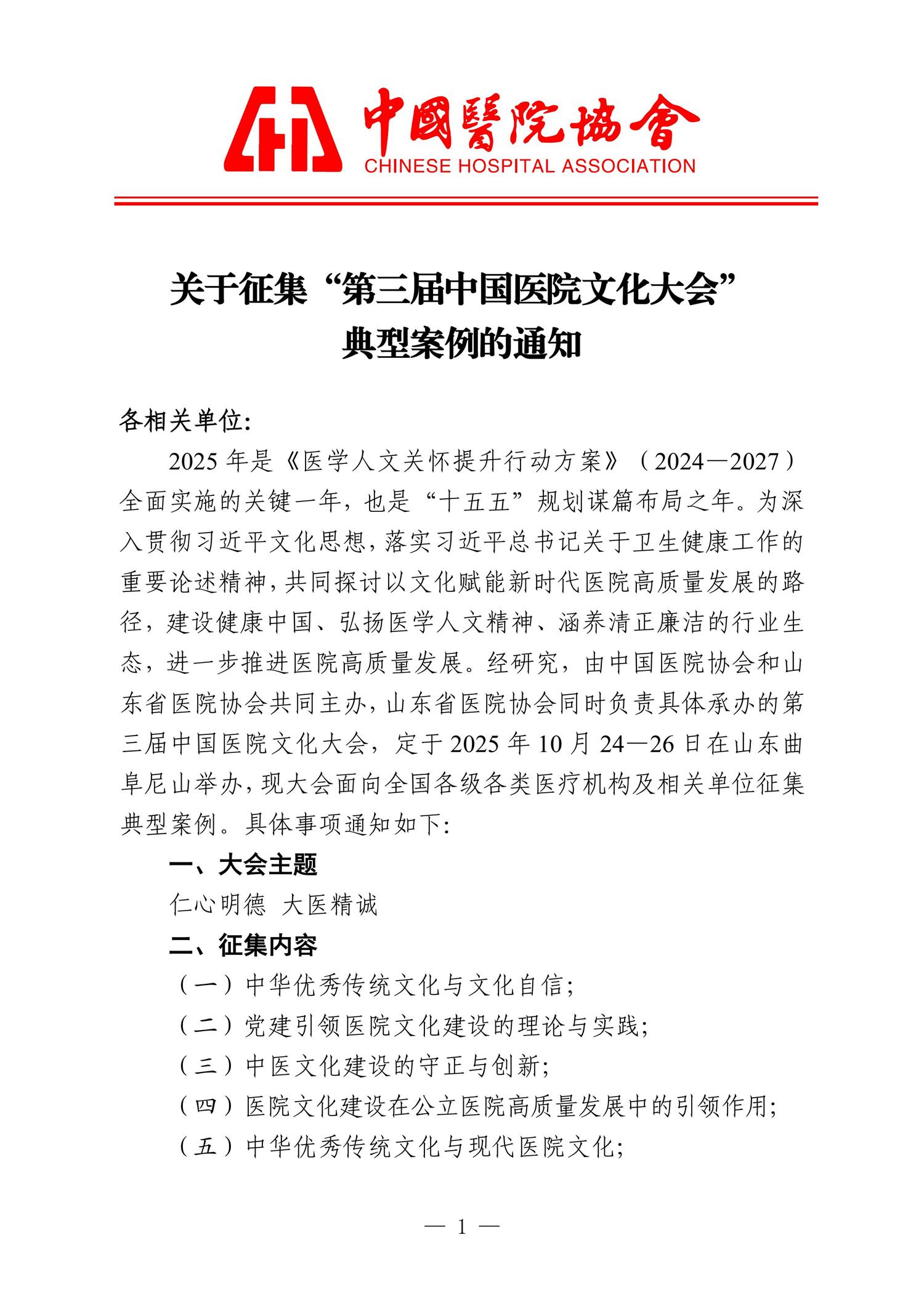 关于征集“第三届中国医院文化大会”典型案例的通知