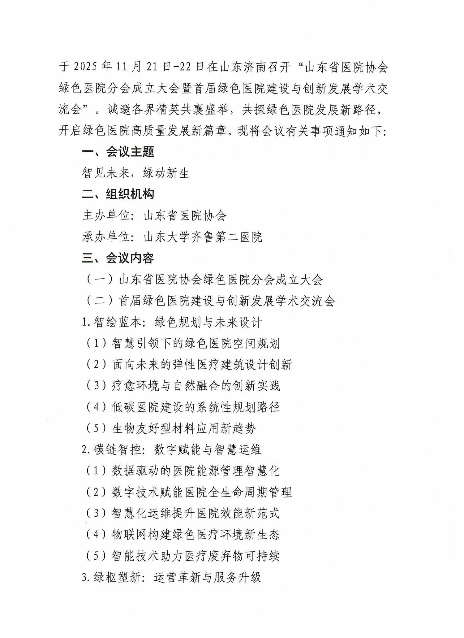 关于召开色情导航 绿色医院分会成立大会暨首届绿色医院建设与创新发展学术交流会的通知
