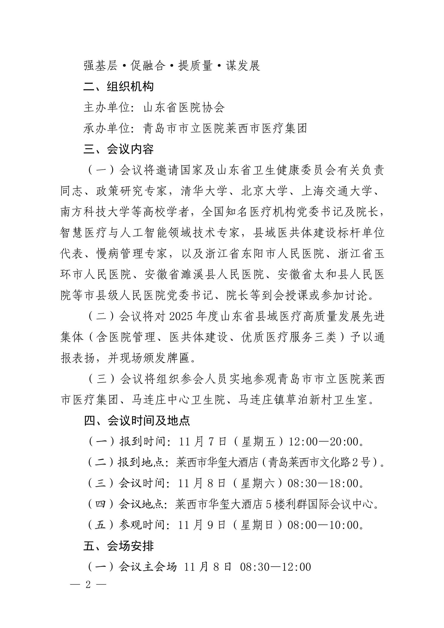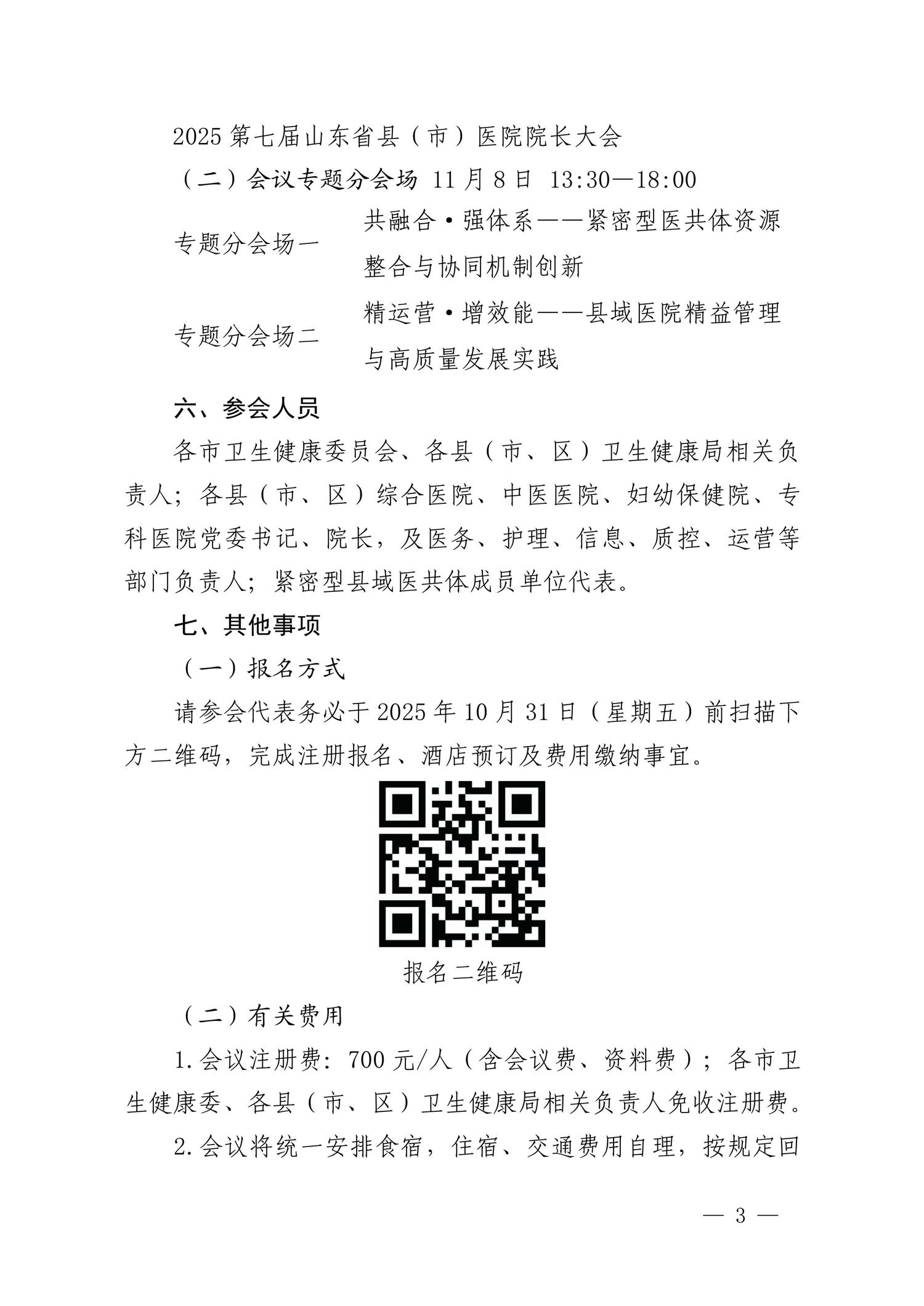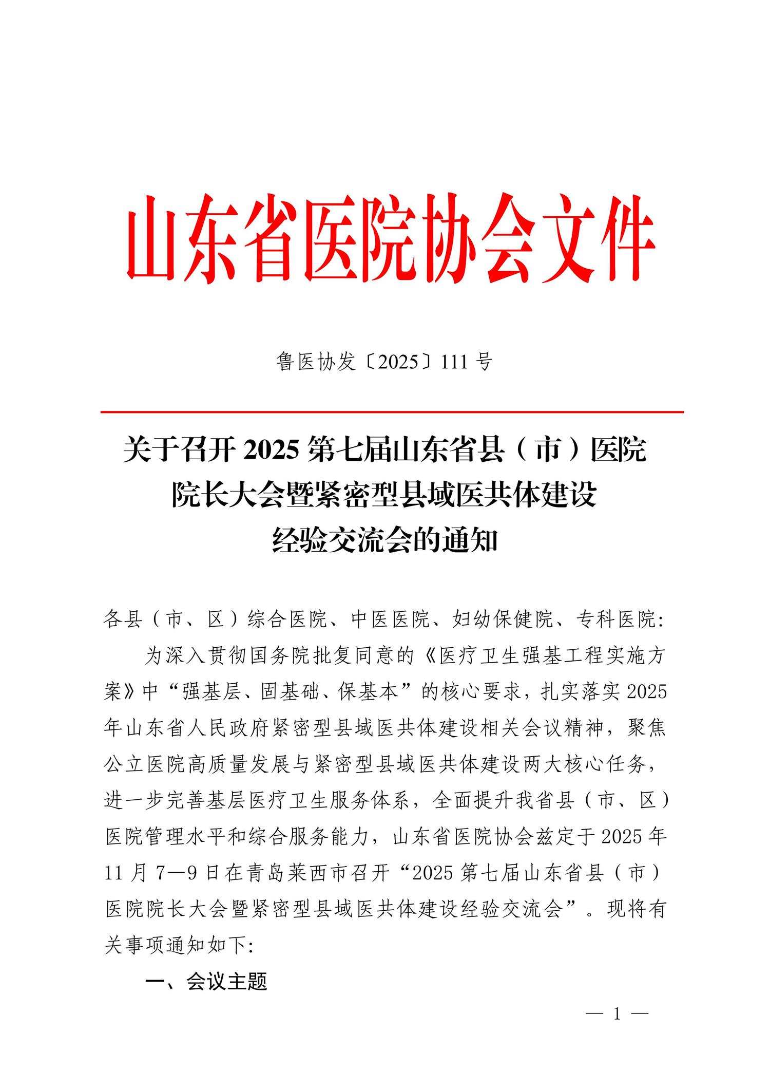 关于召开2025第七届山东省县(市)医院院长大会暨紧密型县域医共体建设经验交流会的通知