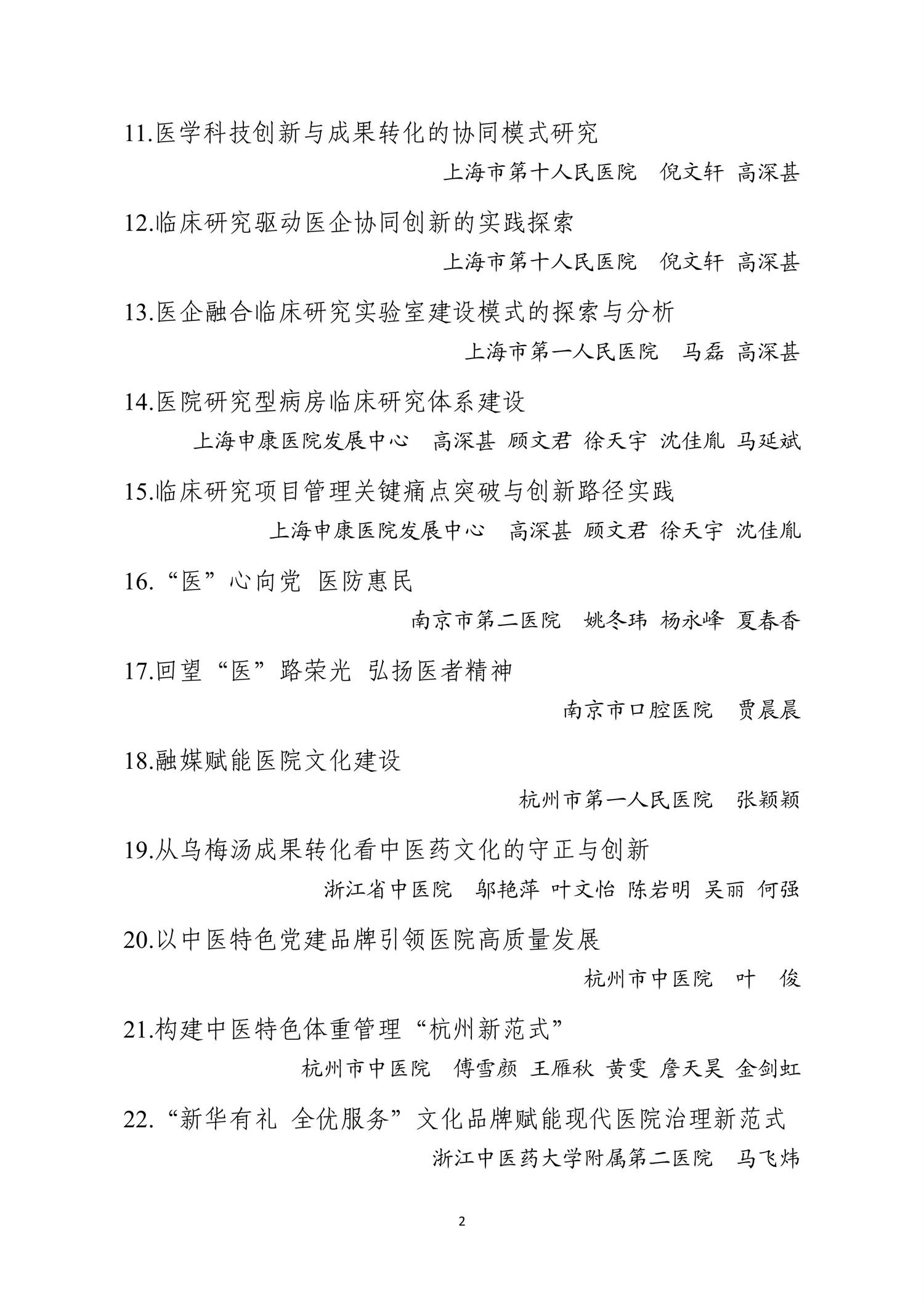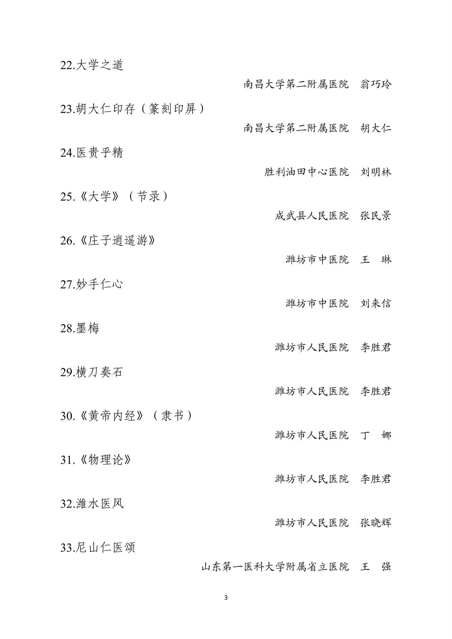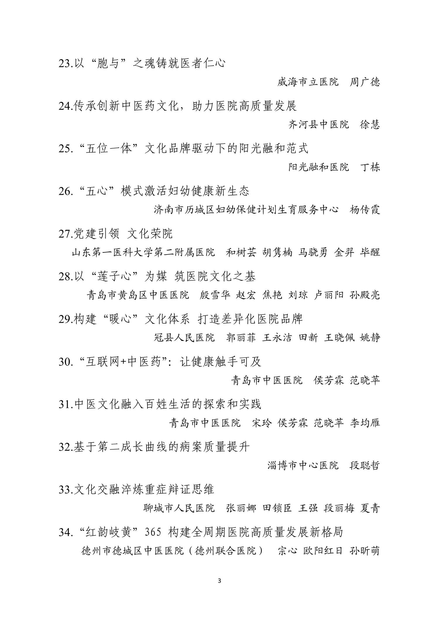 关于公布“第三届中国医院文化大会文化作品、典型案例名单的通知
