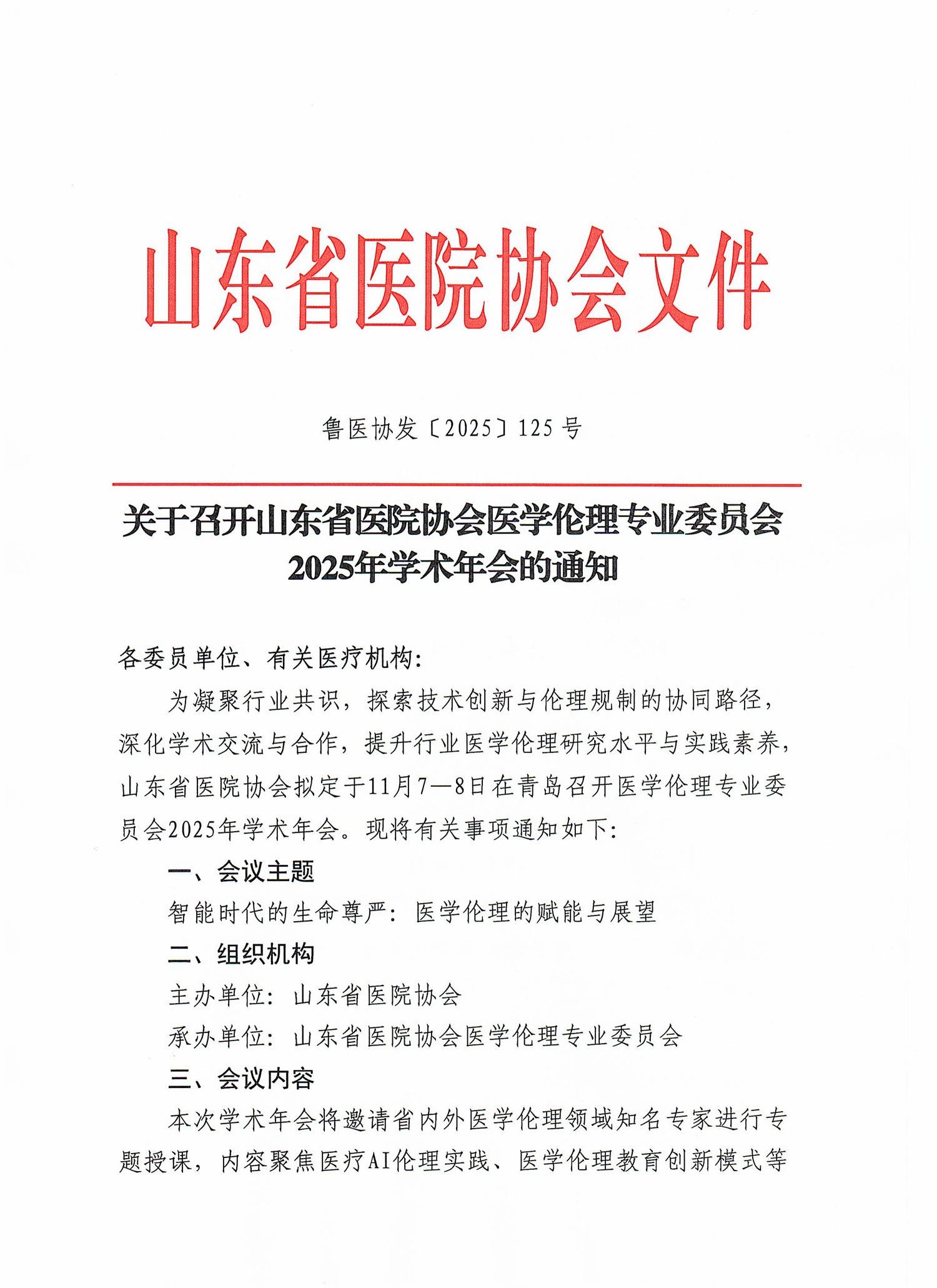 关于召开色情导航 医学伦理专业委员会2025年学术年会的通知