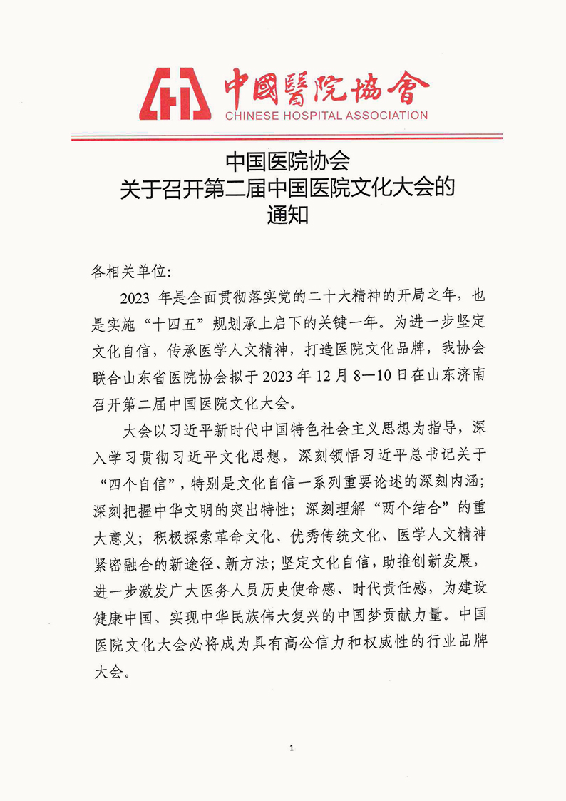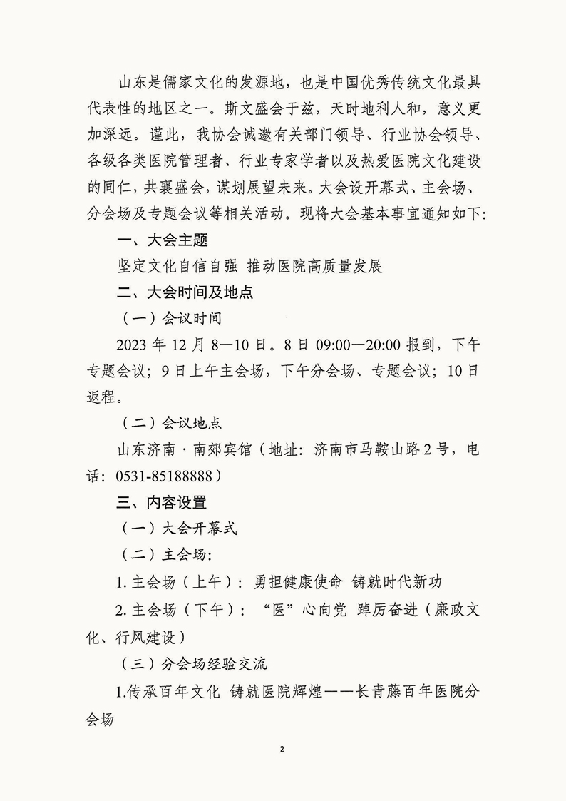 拟于2023年12月8-10日在山东济南召开第二届中国医院文化大会。
