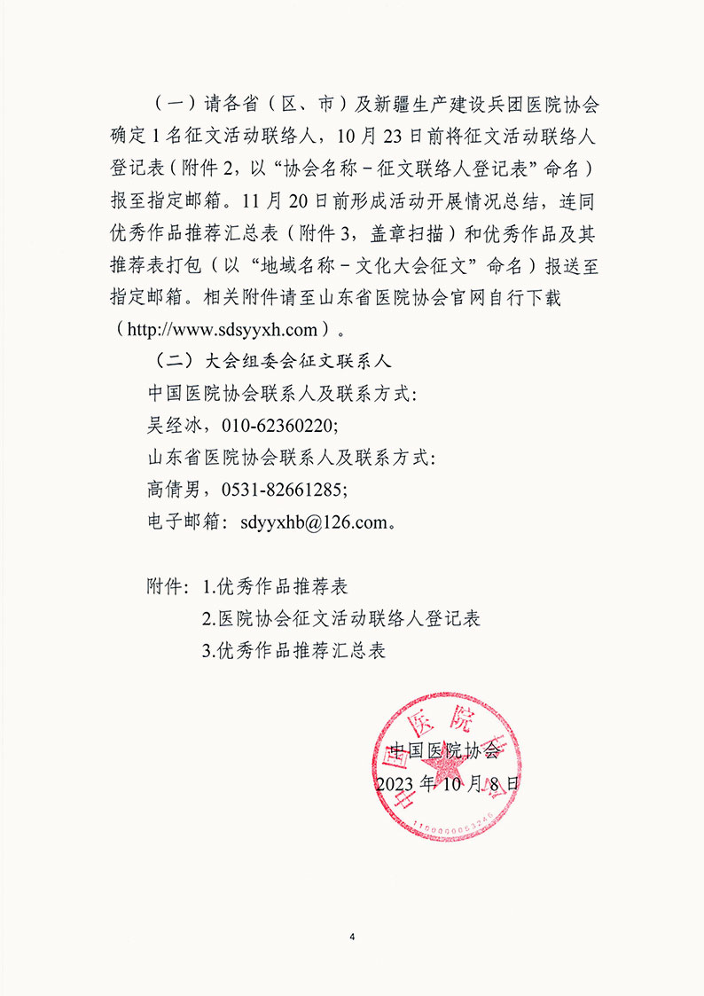 共同主办的第二届中国医院文化大会拟于2023年12月8-10日在山东济南召开。