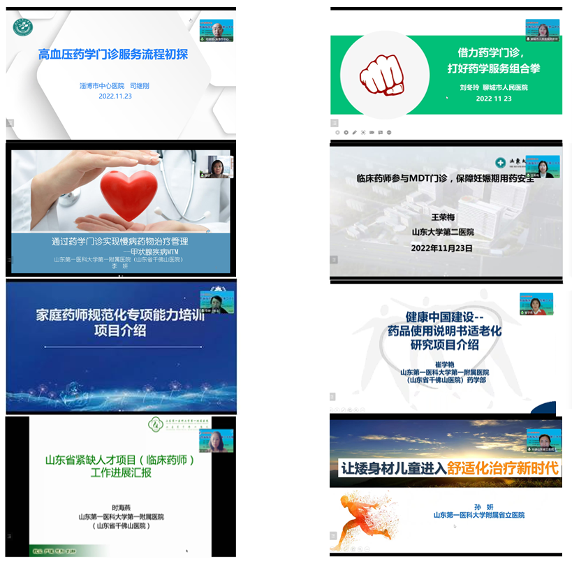 本次沙龙邀请了四所省内颇具特色医院的药学门诊专家进行分享。淄博市中心医院药学部司继刚主任分享了《高血压药学门诊服务流程初探》、山东大学第二医院临床药学科王荣梅主任分享了《药师参与多学科联合门诊,助力妊娠期用药安全》、山东第一医科大学第一附属医院临床药学科李妍主任分享了《甲状腺疾病患者药物治疗管理》、聊城市人民医院刘冬玲副主任药师分享了《借力药学门诊,打好药学服务组合拳》。
