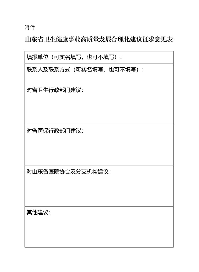 山东省卫生健康事业高质量发展合理化建议征求意见表